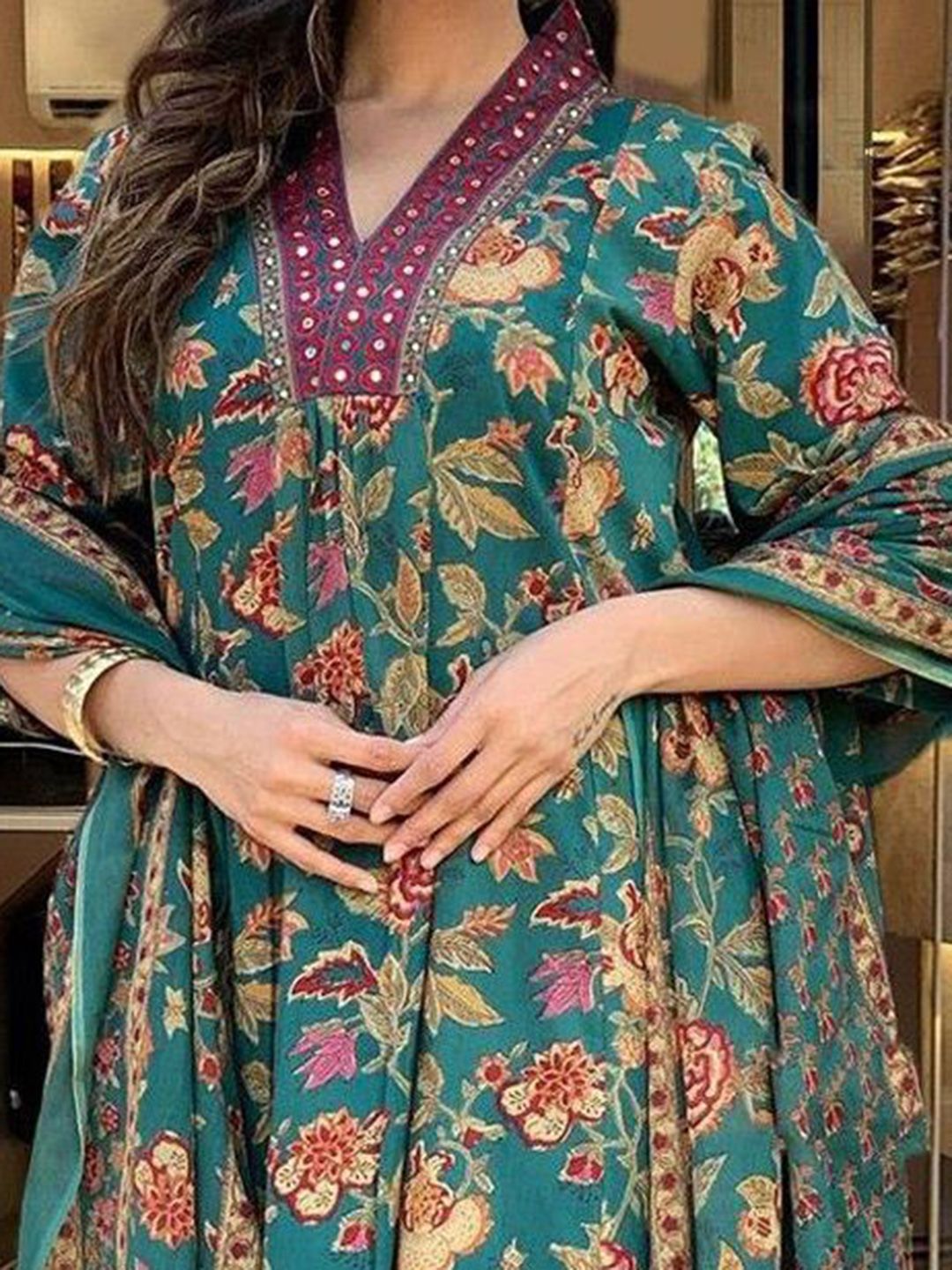 Art Avenue Women Floral Printed Regular Pure Cotton Kurta with Palazzos & With Dupatta