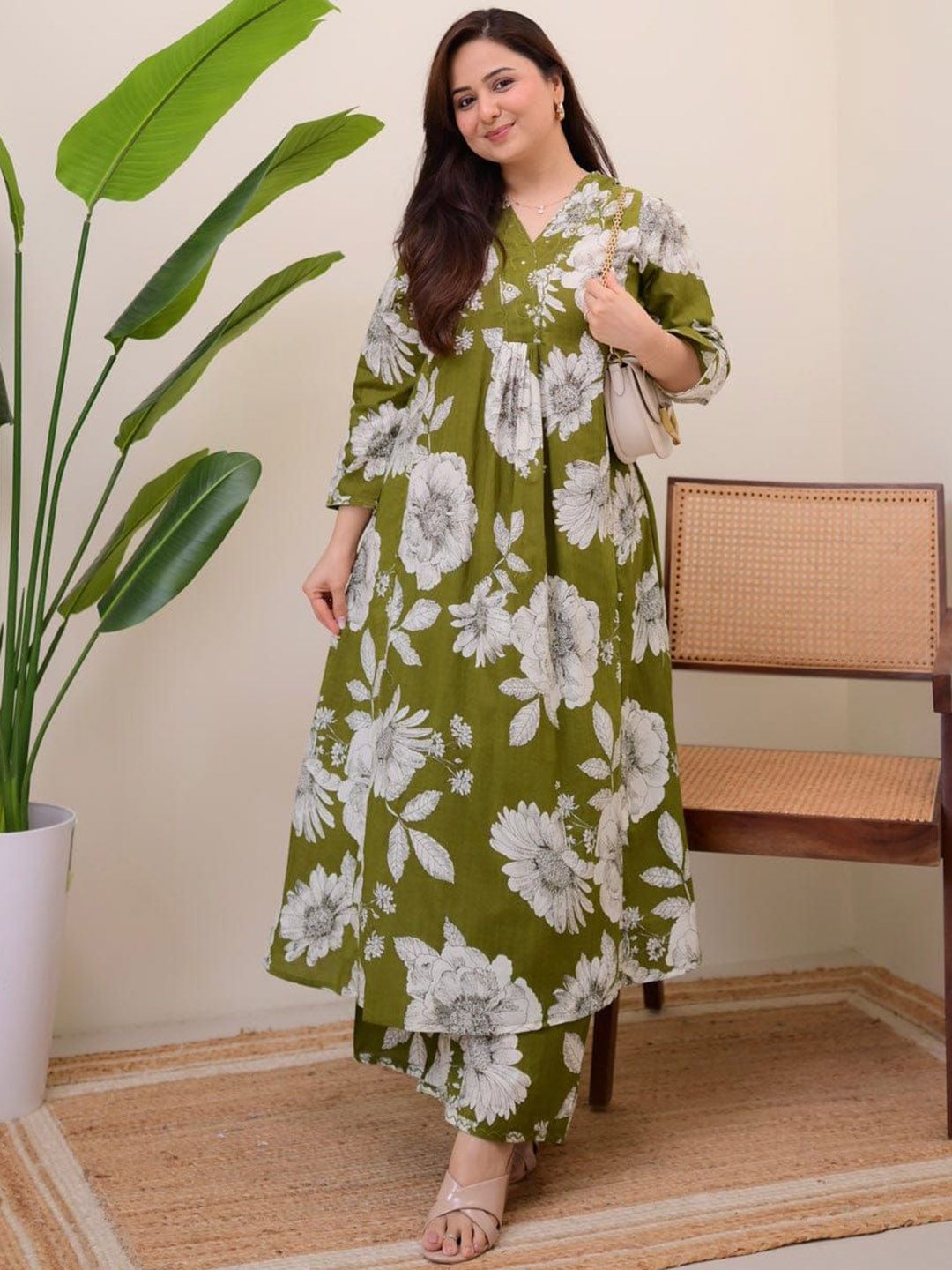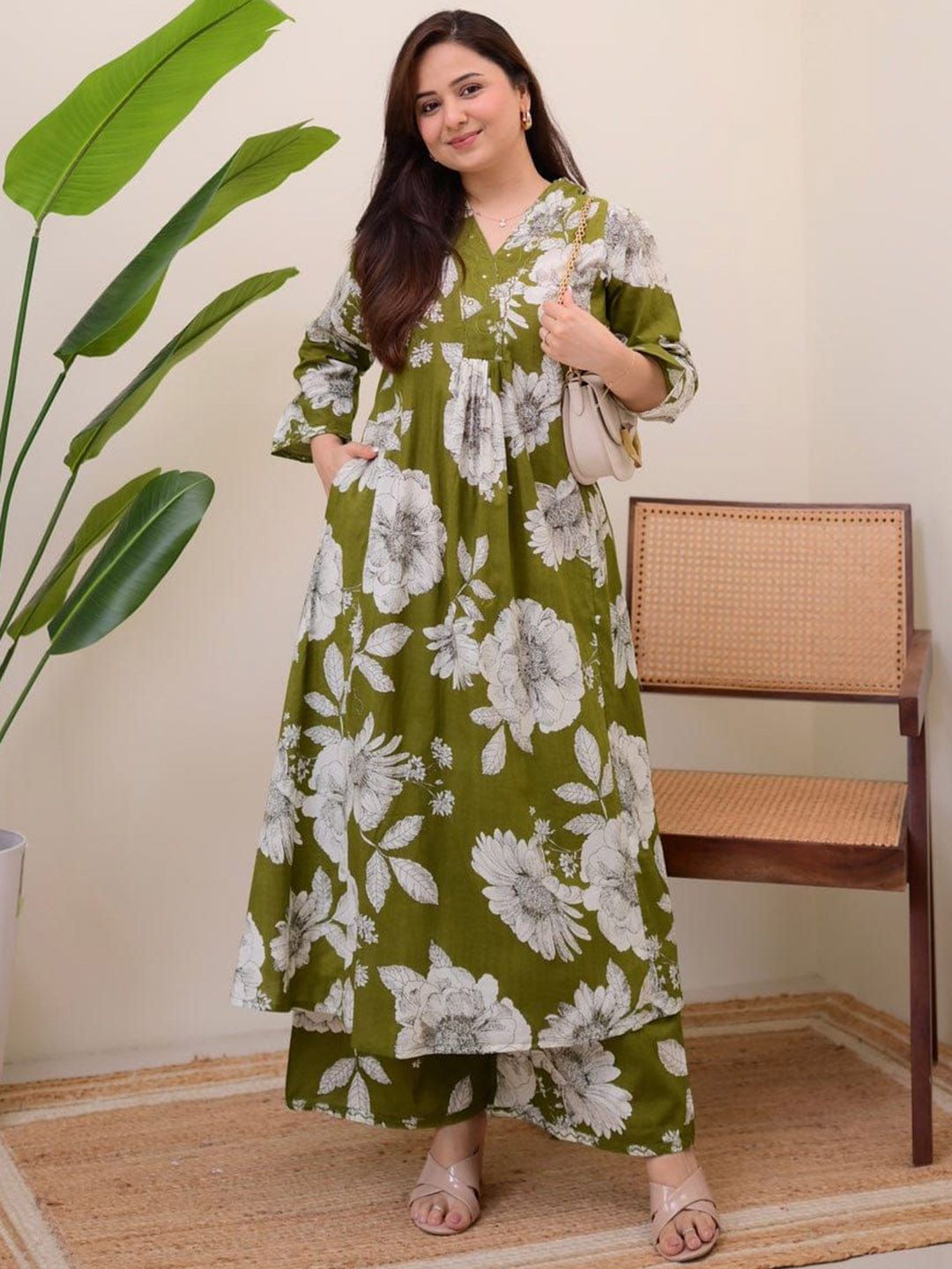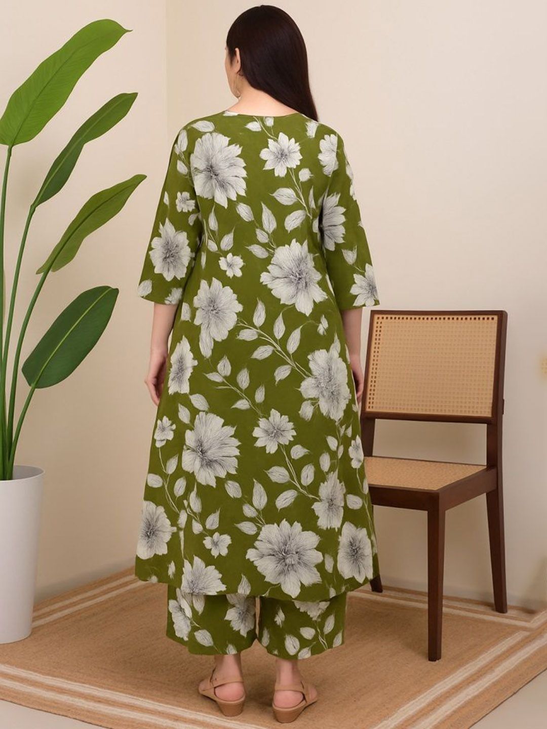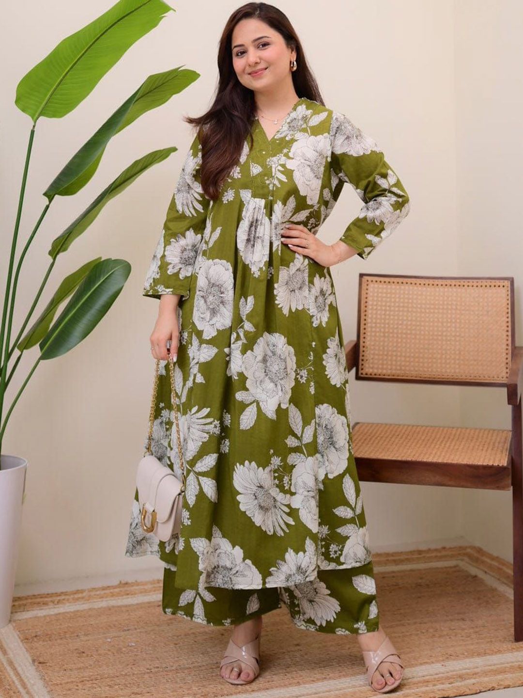 Art Avenue Women Floral Printed Regular Pure Cotton Kurta with Palazzos