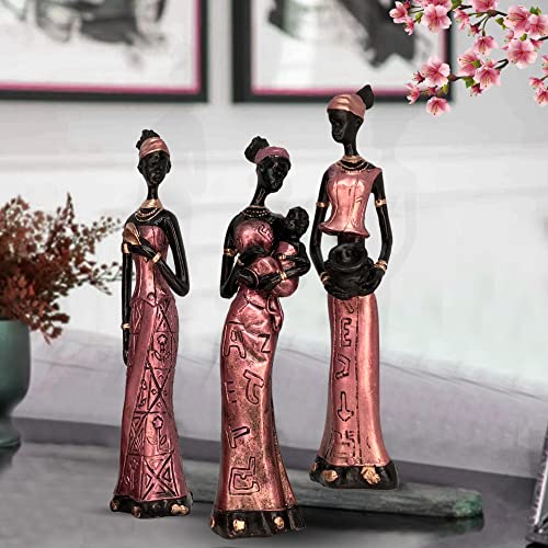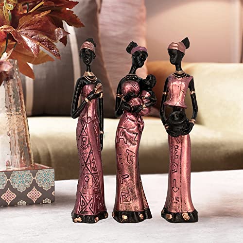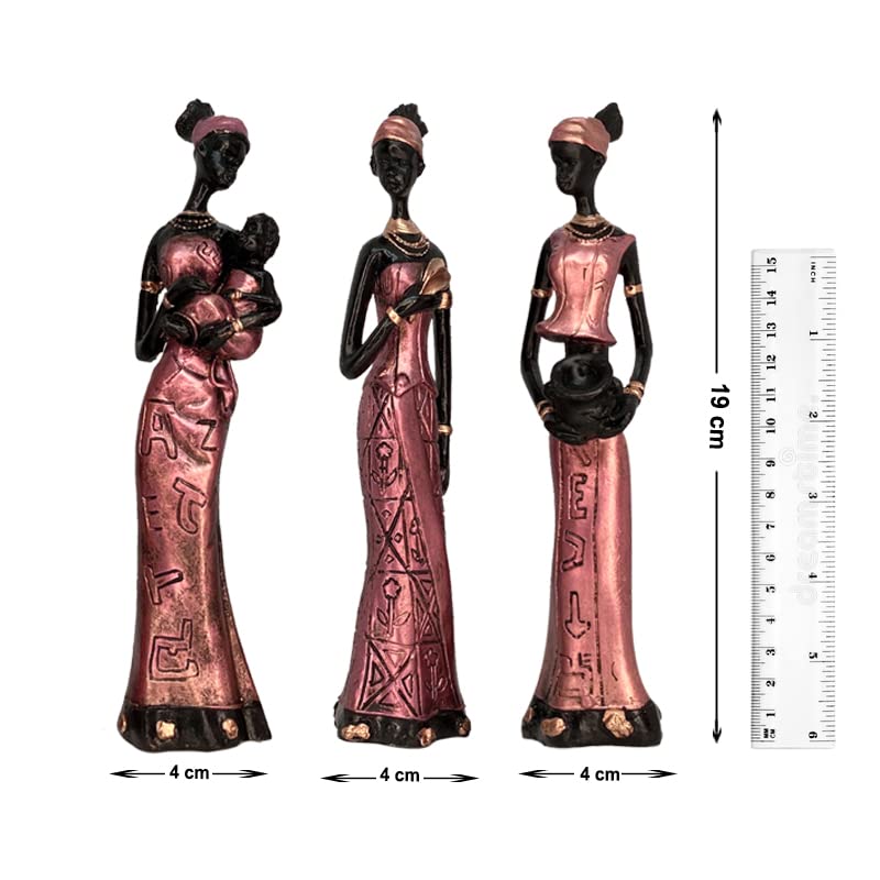 ARTISANS ALLEY Home Decor African Tribal Women Art Piece (Set of 3, Rose Gold and Black Color)