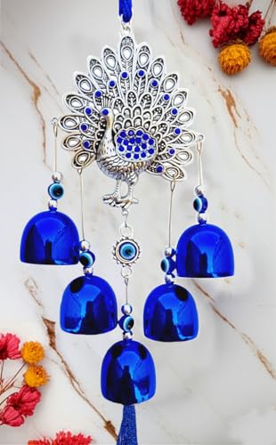 Evil Eye Hanging for Feng Shui remedy and decor at home/office space, Vastu/Feng Shui Remedy wind Chime for Positive Energy, Good Luck, Hanging for Office, Balcony Door Window Decoration. Evil Eye Hanging Wind Chimes for Balcony Home Positive Energy, Peacock Showpiece Nazar Battu for Home Protection, Good Luck Charm and Prosperity at Office This beautiful wall-hanging evil eye charm features protective evil eye beads to ward off negative energy with intricately detailed Peacock evil eye hangings symoblizing freedom, happiness and joy for home positive energy and blessings. This feng shui Evil Eye protect, soothes the nerves and balances the emotions of viewer, thus creates harmony and peace. Placement of evil eye should always near or in front of the main entrance to keep a check on energies entering inside. Give decorative talisman and charm ornament to your loved ones. You can also use it as wall hanging decoration, amulet, blessing and protection for outdoor, interior door, office, home decor. EVIL EYE PROTECTION :- Evil eye decor repels bad energy, brings good vibes, luck, prosperity and great blessings. Let this decoration bring positiveness and good fortune to you and your family. A perfect gift for good wishes, wealth and prosperity. This unique talisman features a captivating design that effortlessly catches the eye and adds a delightful sensory experience. Whether you're seeking to create a calming sanctuary for yourself or searching for a thoughtful and luxurious gift, our Evil Eye Hanging is the perfect choice to infuse your space with a sense of tranquility and style.