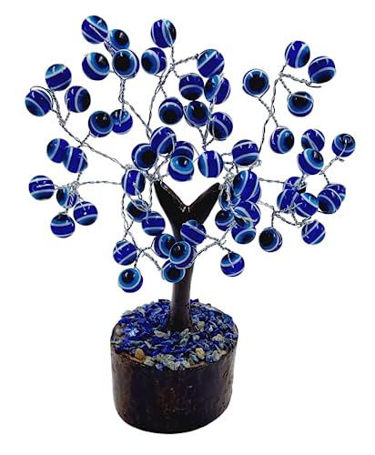 Evil eye charm provides protection and brings you good luck. It keeps the bad spirits away.Evil eye tree is used to ward off evil and negative energies. This evil eyes also deflect negative energy, envy, and jealousy. These Stone tree protect your money and increase the money flow. You can arrange branches in different directions so you can point your tree's blue evil eyes to brings luck, prosperity, provides protection against any kind of losses and enhances the power of an individual. It is a Best Gift for Marriage Anniversary , Parents , Mothers day , Wedding Return Gift , Birthday , House warming , Office / Shop Inaugration , Festive occasions - Like Diwali ,Raksha Bandhan , Grah pravesh and Corporate Gifts It is also very effective to protect from the evil eyes of your competitors at the workplace or industrial competitors. Individuals who are distressed by negative energies are affected by the distressing energy that is released from negative energies. This is also a form of being afflicted by the evil eye and Evil eye tree is used to ward off evil and negative energies. This Evil Eye Tree has 60 Beads with wooden base.