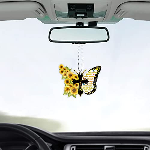 ?? DELIGHTFULLY UNIQUE - " ARTSYWIX Butterfly Car Hanging Ornament, Jesus Car Accessories, Faith Cross Ornament, Pendant for Rear View Mirror Car ". When the person receiving the gift sees this decoration, they will be delighted, surprised and will remember that you once brought blessings and comforts, or just keep it as a precious keepsake to commemorate the important things in life, a perfect and precious souvenir gift.     ?? PREMIUM MATERIAL - Made of 100% high-quality transparent plexiglass acrylic which is lightweight, sturdy, non-toxic, tasteless, and odorless. These acrylic signs have crisp, clean edges and are moisture resistant, shatterproof, and clearer than glass. Measures appx 3.5"x3.5" and the thickness is about 3mm.     ?? HIGH-QUALITY PRINTING - Professional printing technology with eco-friendly inks. Flat-print artwork on the backside (second surface) of the acrylic board. This gives the overall look a glossy finish with a depth and allows you to look through the clear material itself and onto the print. This gives more protection from both the elements and vandalism. No 3D, or Textured effects; Clear patterns; Vivid colors; No fading or Peeling off.     ?? MULTI-PURPOSE - You can hang it on your rearview mirror as a car decoration, auto decoration, vehicle accessory, automobile accessory, or display it as home decoration wherever you like. Choose them as a gift for your family, friends, sisters, dad, mom, boss, aunt, uncle, grandma and grandpa, coworker, neighbor, colleagues, new homes, newlyweds, leaving farewell, teachers, coach, mentors, dentist, etc.!     ?? INCLUDES GIFT BOX & STRING - Each Christmas ornament is packaged in a gift box. It comes with metal wire attached to the strap. Which can be easily hung on your Christmas tree, to display in your vehicle, on your bag, or in your living room, bedroom, or workroom, wall will all be good decorations scenes.     ?? SATISFACTION GUARANTEE - If you have any questions, complaints or suggestions about our product quality, after-sale service or work efficiency, PLEASE CONTACT US with attached pictures about the problem, we will provide you a satisfactory solution WITHIN 24 hours.