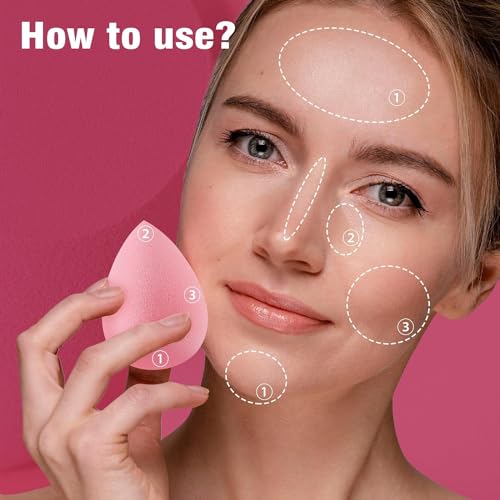 The beauty blenders are made from non-latex material: very soft feeling, Refine pores, well elasticity, reduce allergies and foundation waste, easy to clean and maintain. Wet and dry use, blending sponge turns bigger when wet, dab it evenly to form a gorgeous makeup It's easy to clean and dry out. Please cleanse it after each use and dry it in a ventilated place, never loss elasticity Versatile Beauty Blender: Suitable for all types of face makeup, this beauty blender sponge is perfect for achieving an airbrushed finish, whether you're using liquid, cream, or powder products.