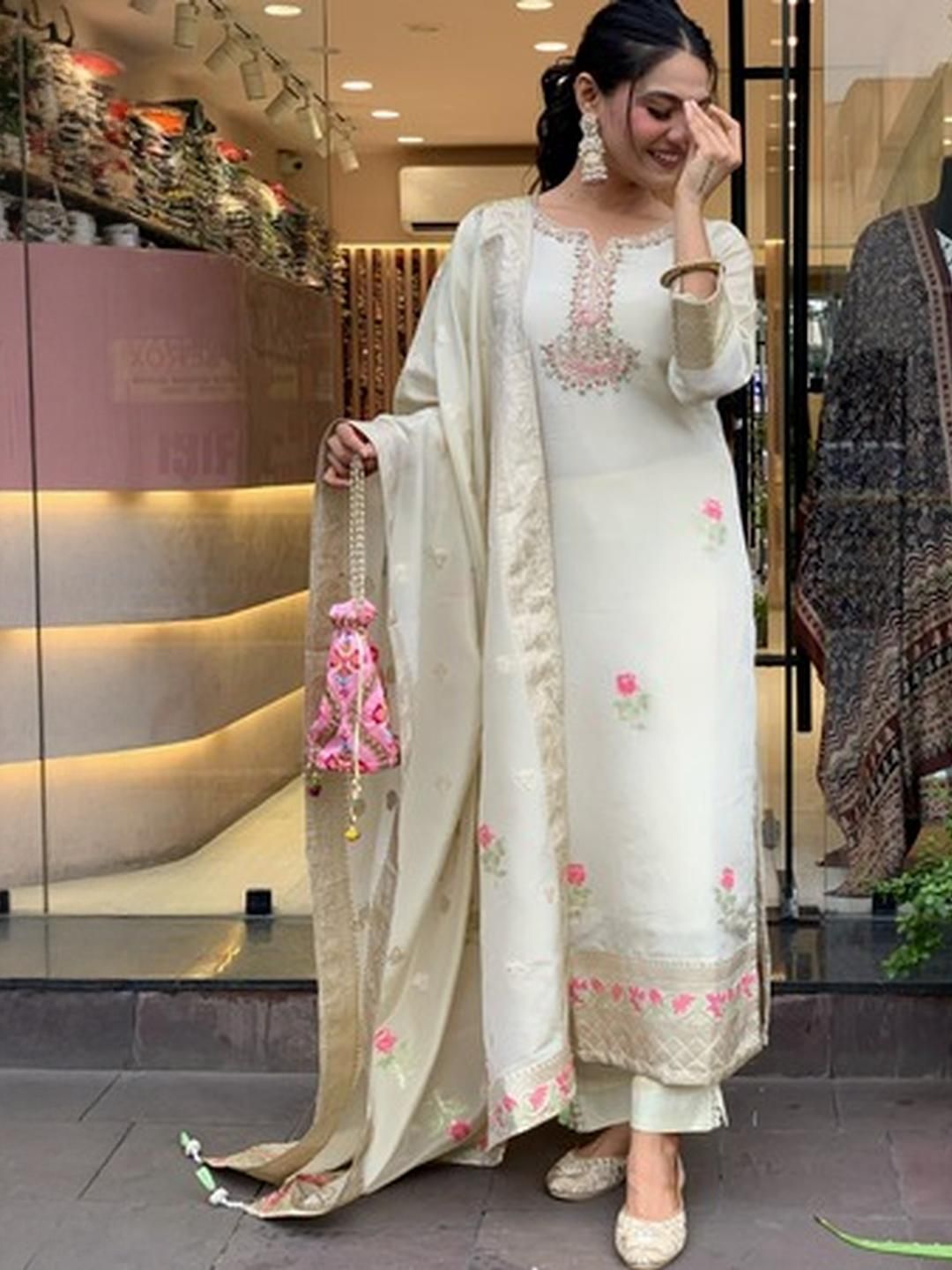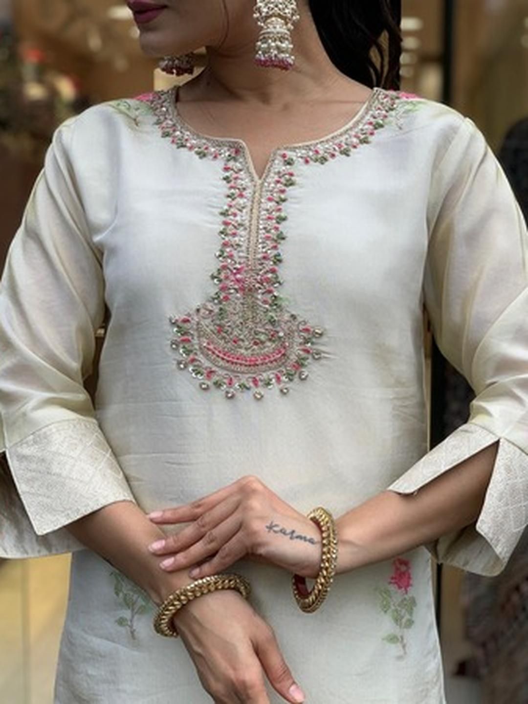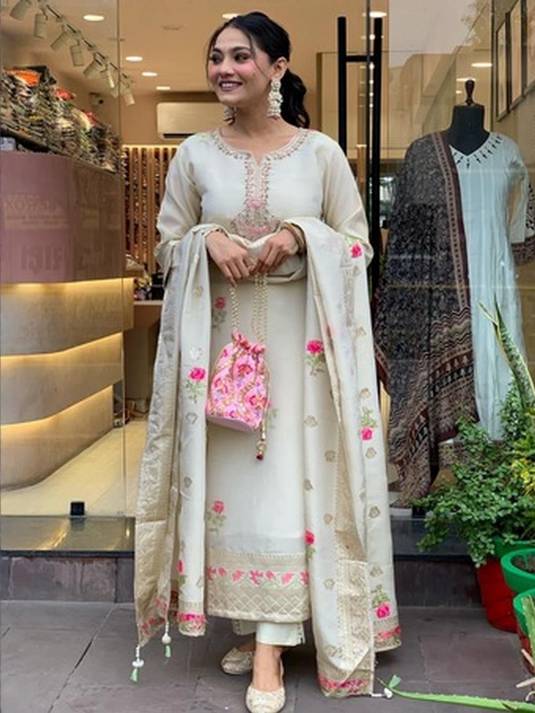 ATOXIC Women Cream Chanderi Silk Kurta Sets