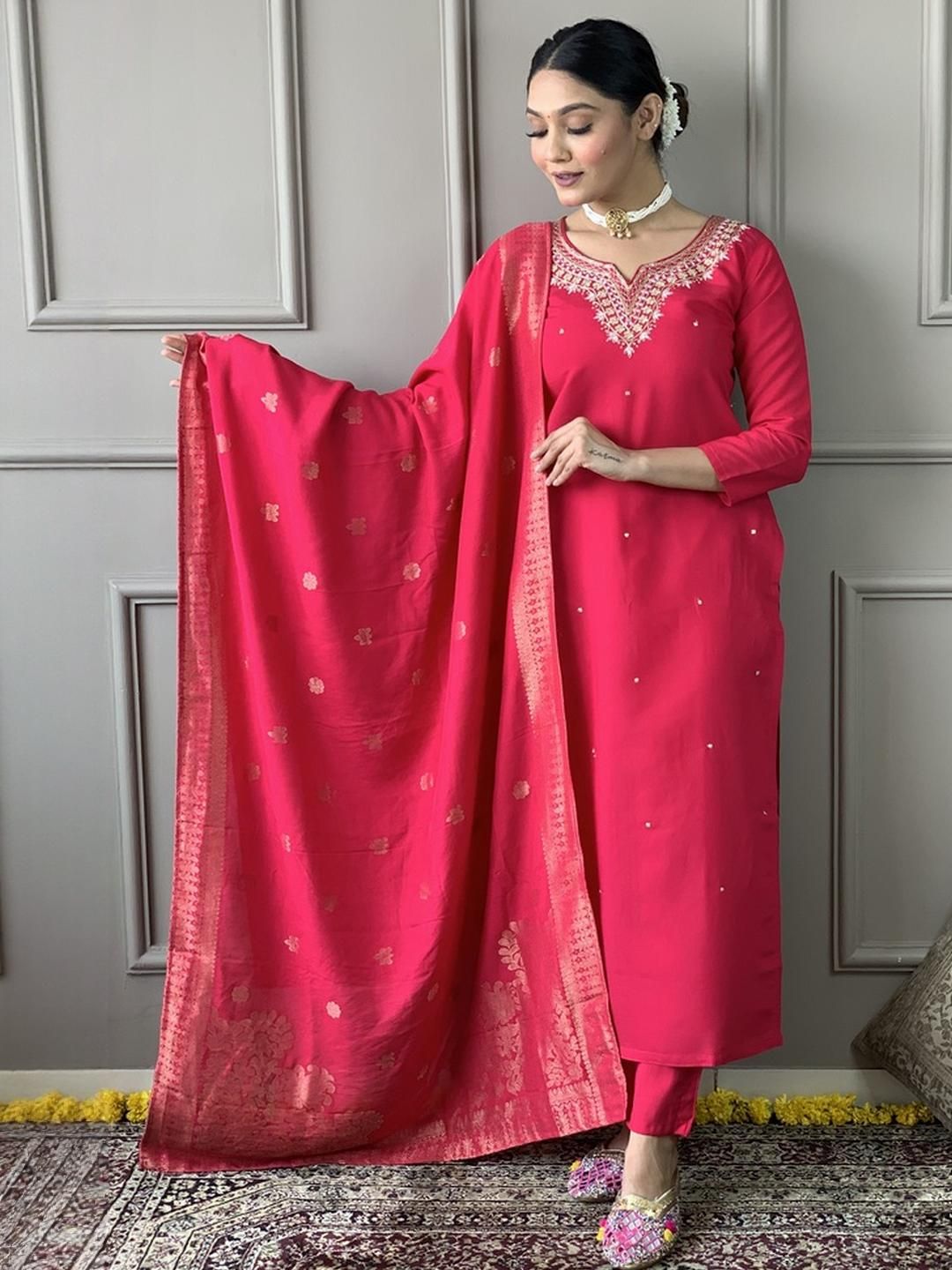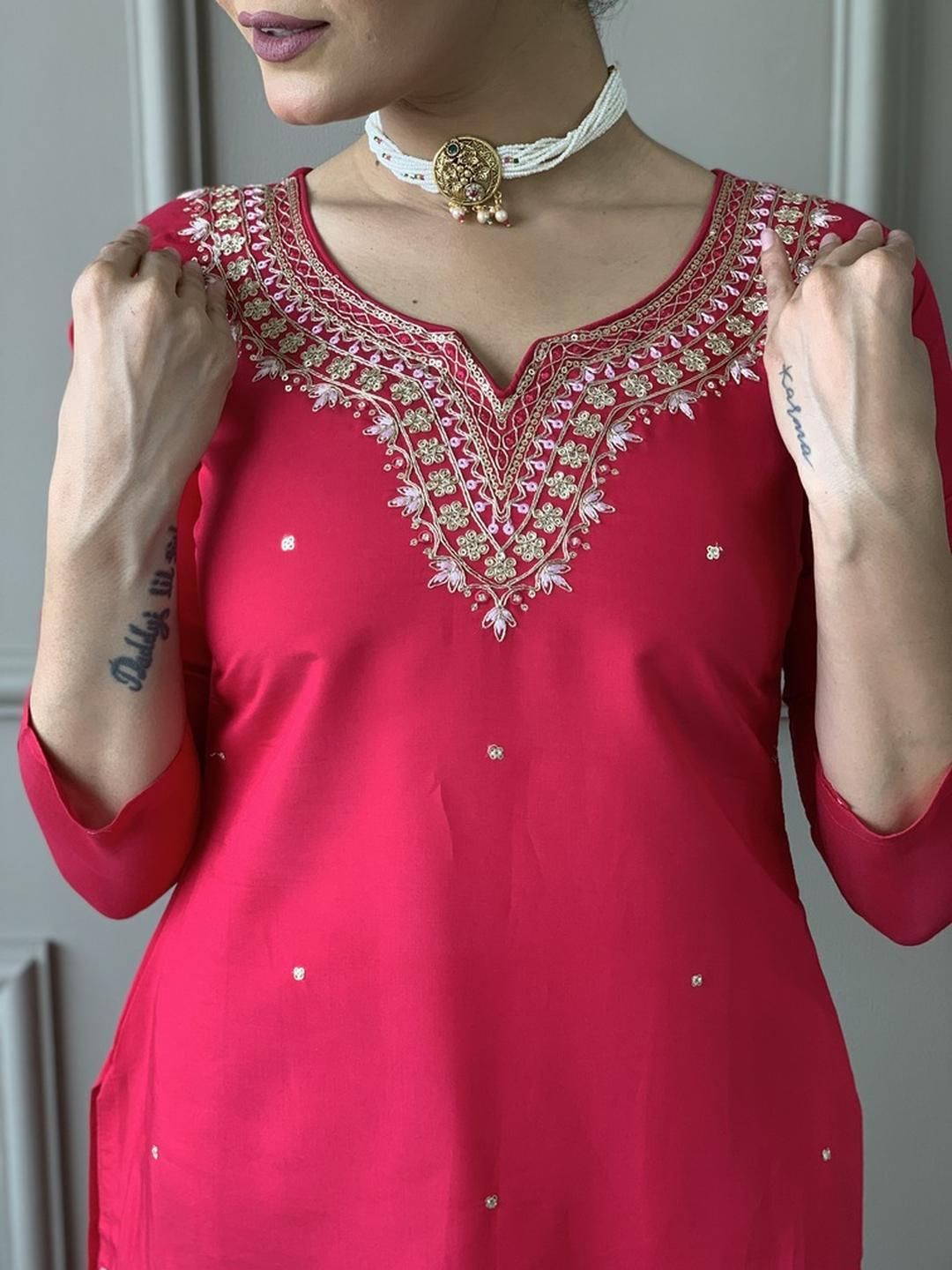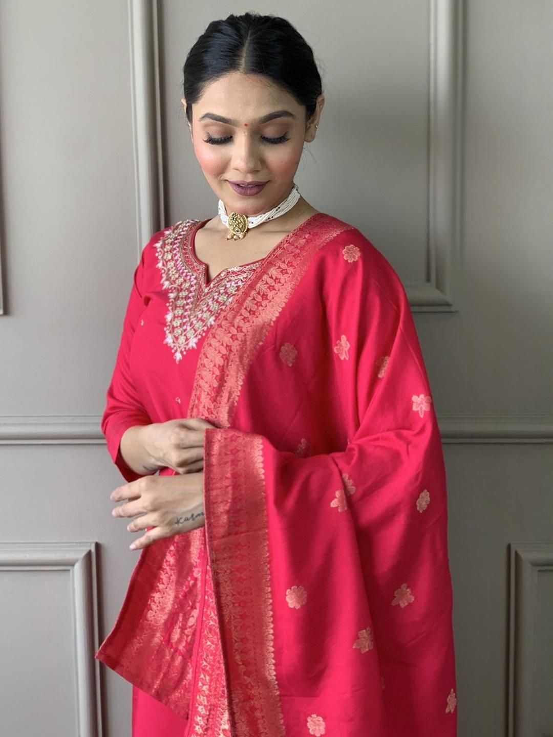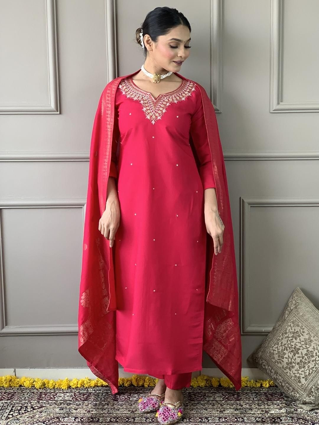 ATOXIC Women Red Chanderi Silk Kurta Sets