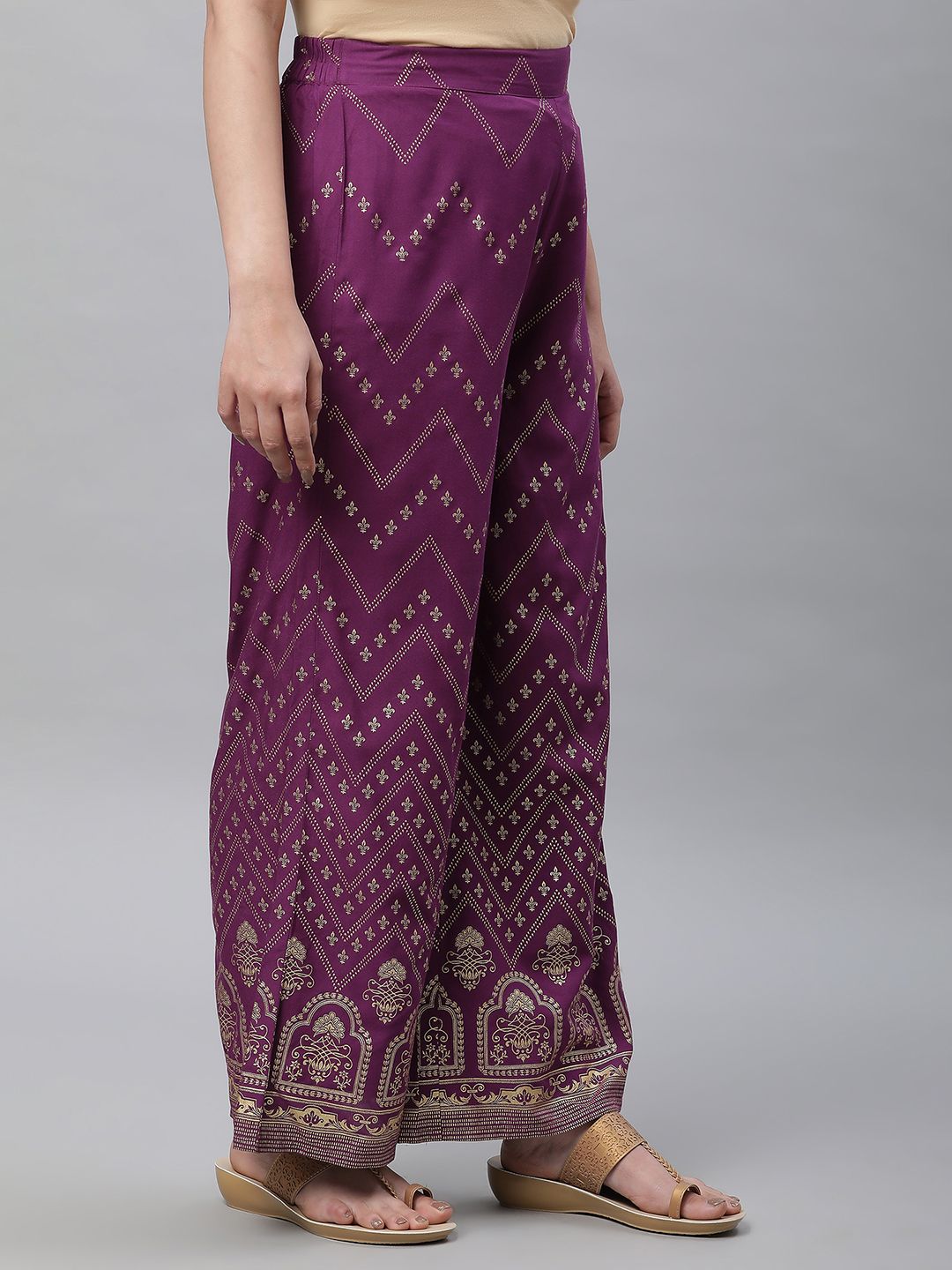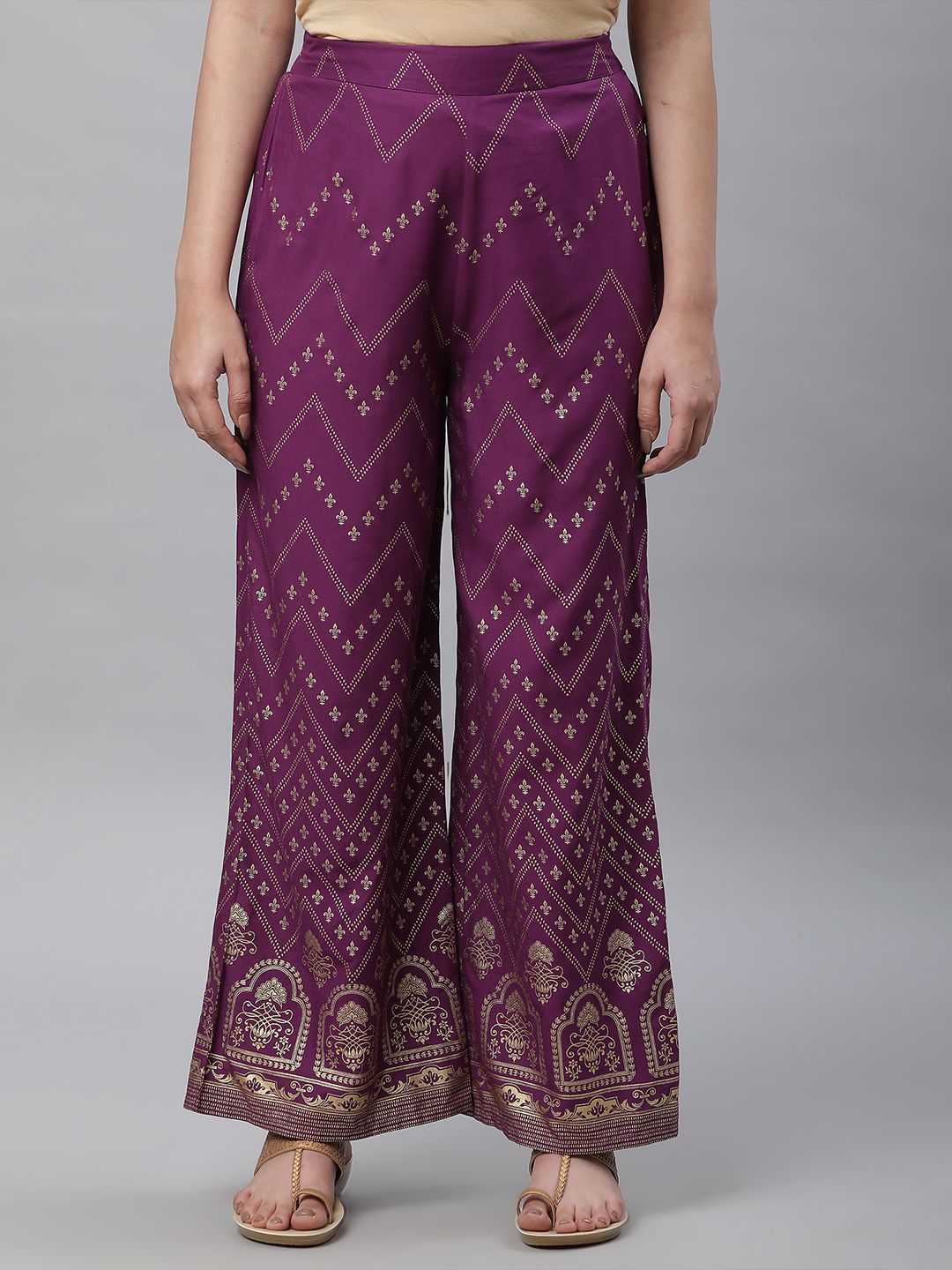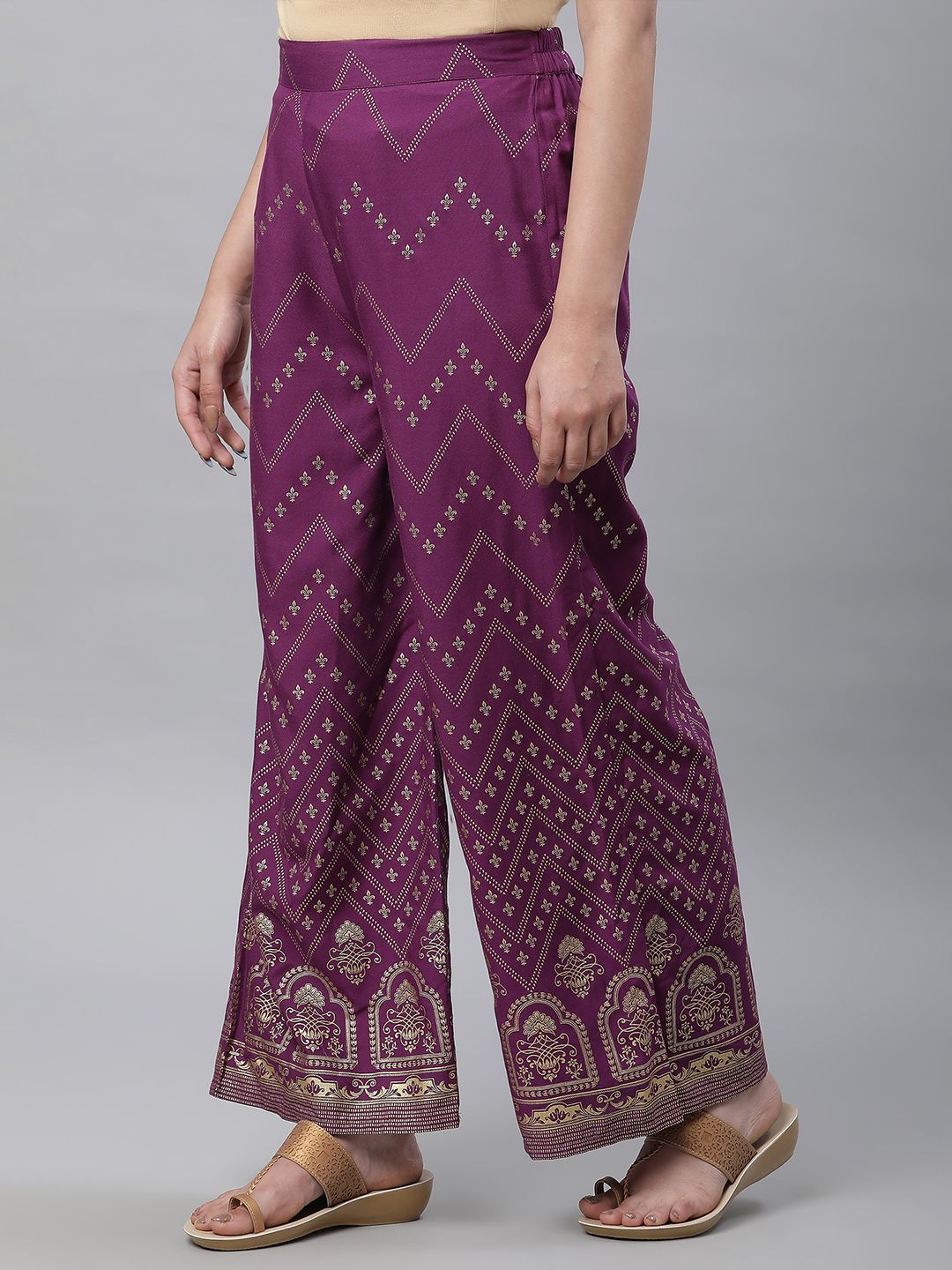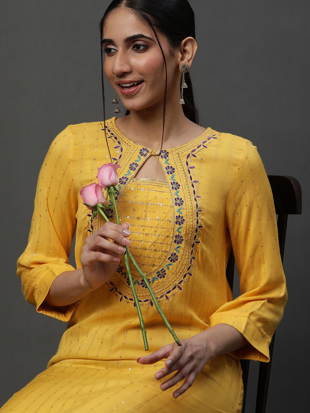 AURELIA Floral Embroidered Sequinned Keyhole Neck Straight Kurta With Palazzos