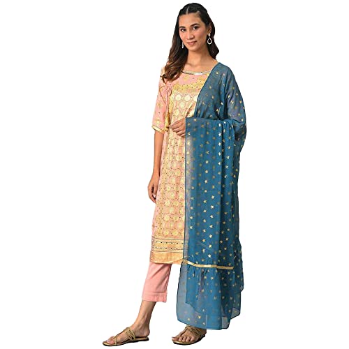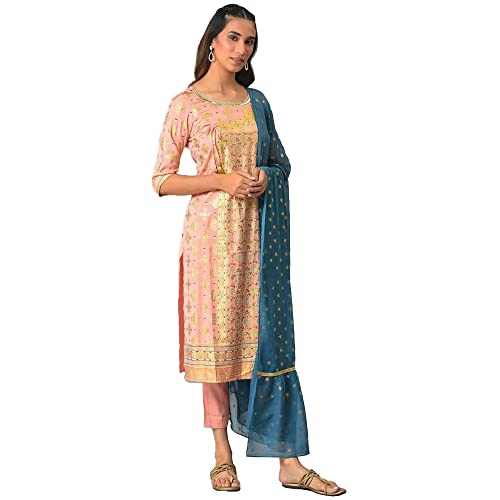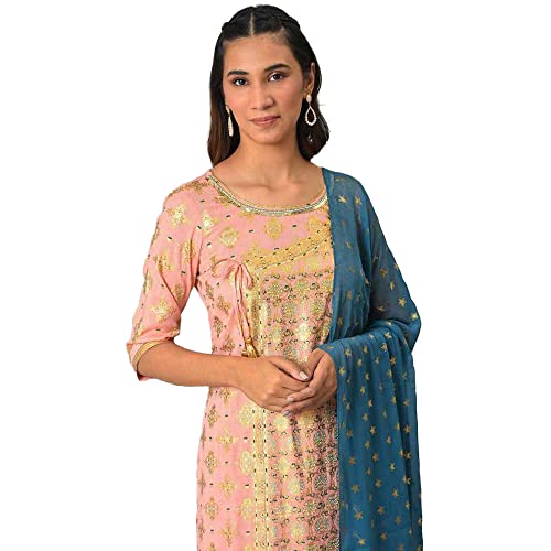 Aurelia Viscose Blend Women Peach Printed Ethnic Kurta With Pants And Dupatta