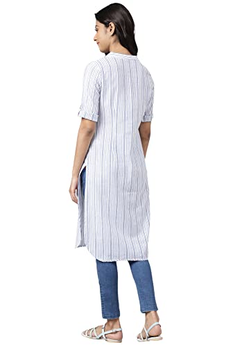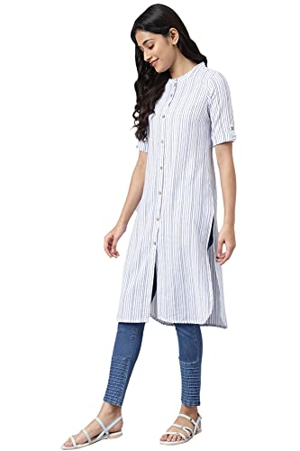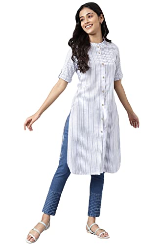 Aurelia Women Cotton Straight Fit Stripes Printed Straight Kurta