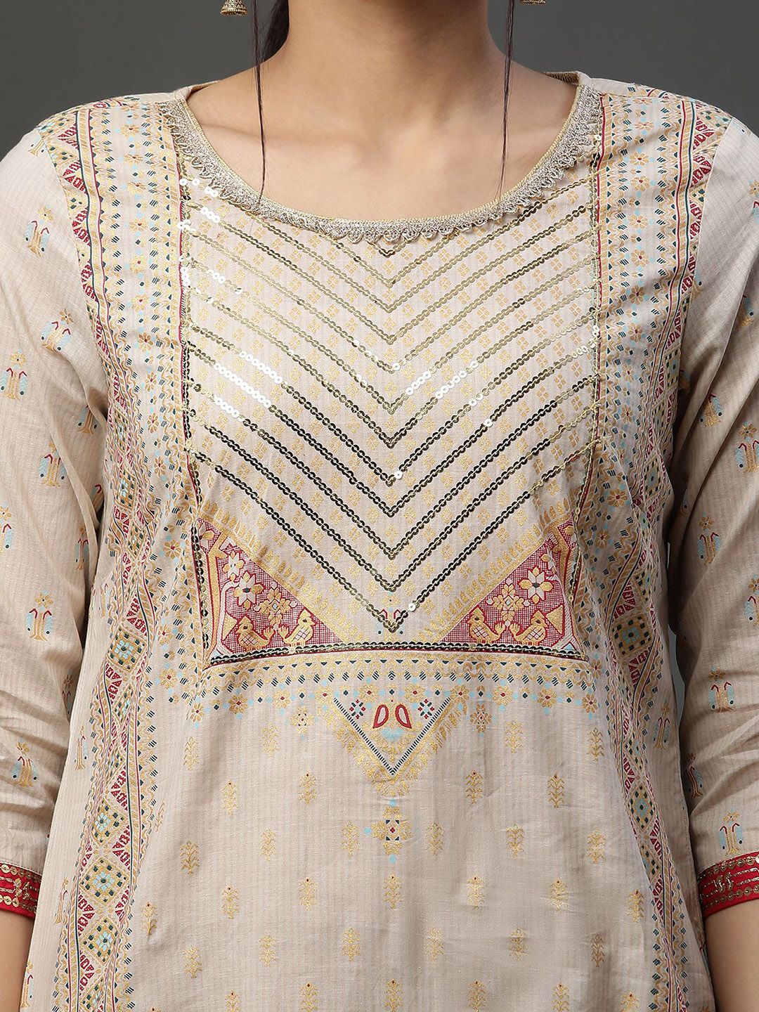 AURELIA Women Geometric Printed Cotton Kurta with Leggings