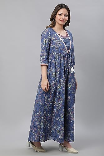 Aurelia Women's Cotton Regular Fit Peony Ikkat Printed Cambric Flared Kurta