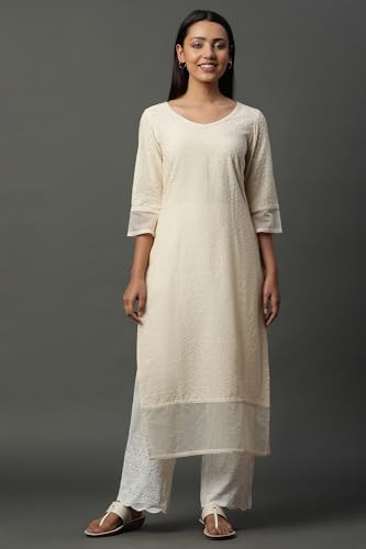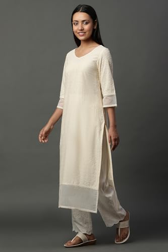 Aurelia Women's Cotton Straight Fit Embroidered Straight Kurta