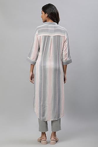 Aurelia Women's Rayon Dobby Crepe Straight Fit Coral Stripes Yarn Dyed Straight Kurta