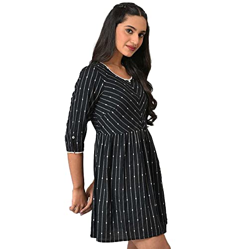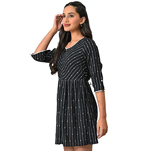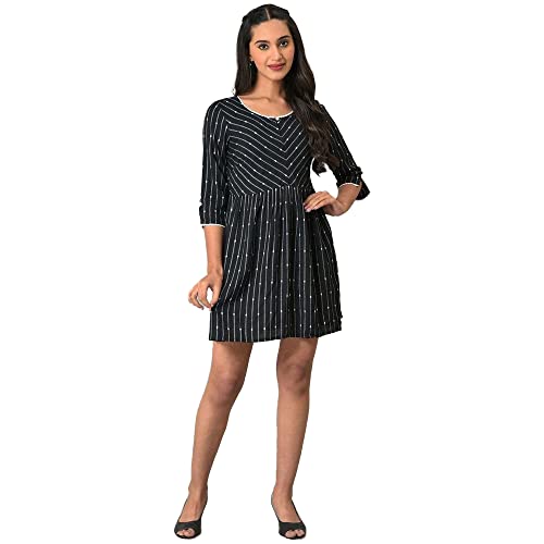 Aurelia Women's Rayon Regular Fit Regular Mid Thigh Length Dobby Fit and Flare Kurti