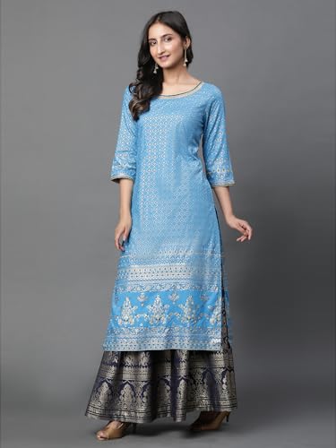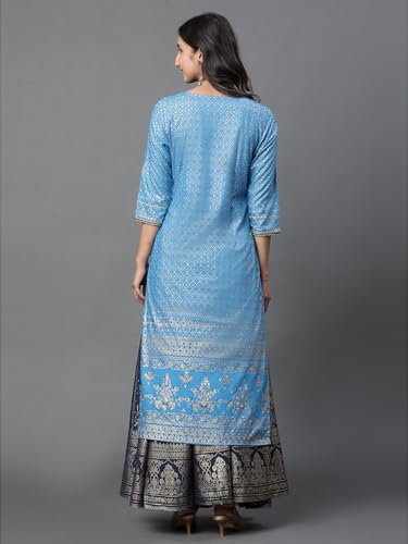 Aurelia Women's Rayon Straight Fit Jewel Ornamental Printed Straight Kurta