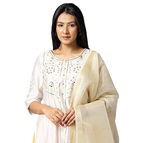 Aurelia Women's Rayon White Gotta Patti Kurta and Dupatta Set Below The Knee Dress