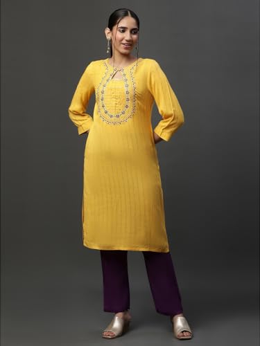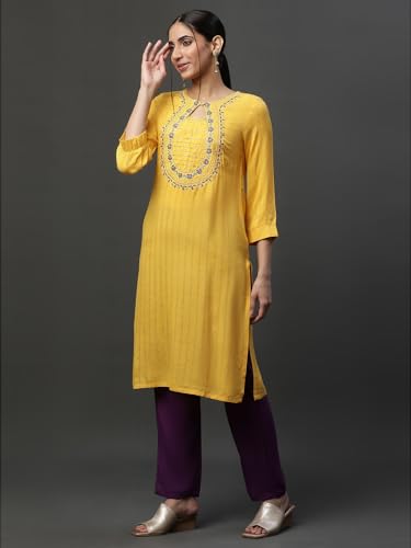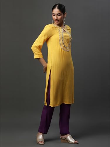 Aurelia Women's Viscose Regular Fit Solid Regular Kurta