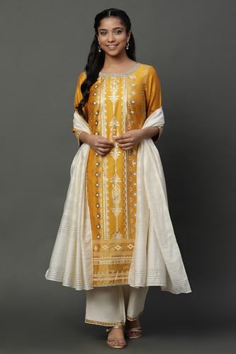 Aurelia Yellow Abstract Printed Geometric Printed Blend Kurta Dupatta Bottomwear