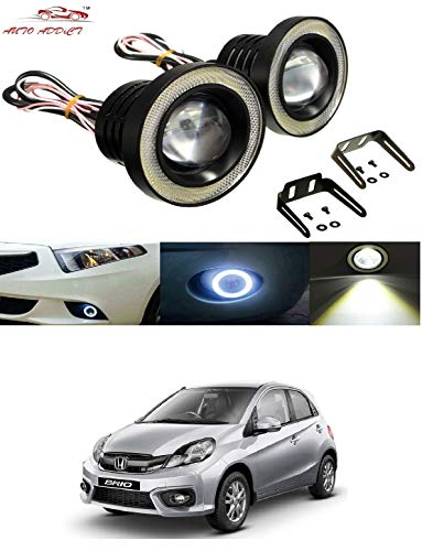 Auto Addict Car LED Fog Lights 3.5" High Power Led Projector Lamps Cob with White Angel Lights Eye Ring for Honda Brio