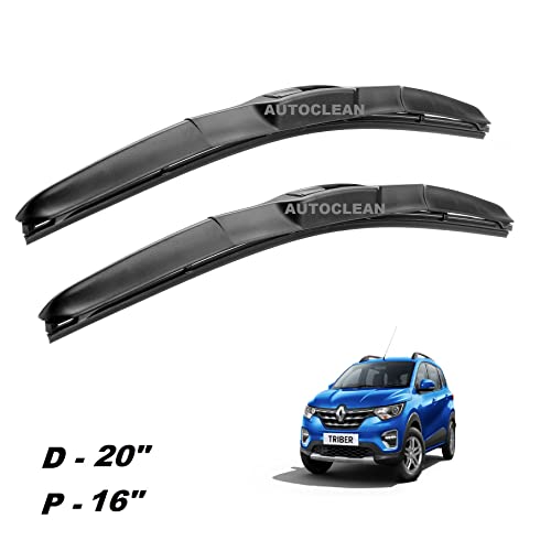 WIPER SPECIFICATION- Renault Triber , SIZE - (RH) 20"+ (LH) 16" QUANTITY:2 pieces -1 driver side wiper and 1 passenger side wiper ITEM : genuine auto clean hybrid premium all season wiper blade. FITMENT:- u hook type (direct oem replacement). MATERIEL:- premium natural rubber with DU PAINT teflon coating. DESIGN:- hybrid type wiper. TEMPERATURE:- +70 c to -20 c AUTO CLEAN wiper feature and benefit benefit include:- OEM REPLACEMENT:- quality and fitment are guaranteed all season wiper blade eliminate the need for a winter or summer blades. durable material offer longer performance life over other conventional wiper blades specially blended rubber delivers the ultimate smooth, clean,steak free wiper flexible spine design fit the windshield better, providing superior windshield contact. it is highly recommended to get your vehicle's wiper blade replaced before it get too let and end changing you vehicle windshield.