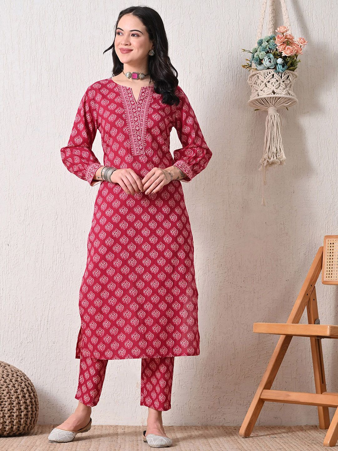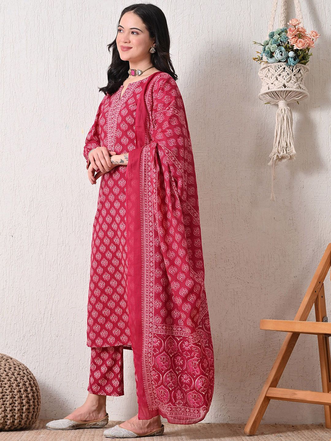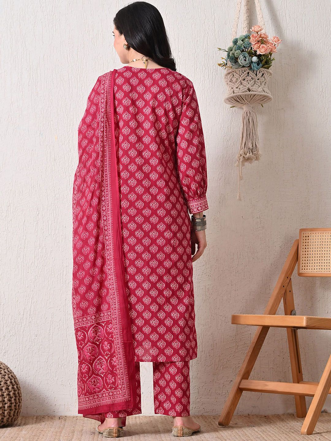 AVYCO Women Ethnic Motif Printed Pure Cotton Kurta with Trousers & Dupatta