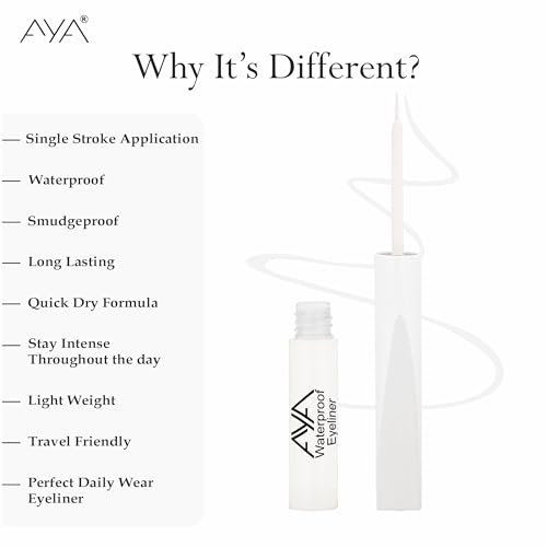 AYA Pop Eyeliners deliver a flawless, even finish in just one stroke. Enjoy the smudge-proof, water-resistant formula that offers a long-lasting look and effortless application. AYA Matte waterproof Pop eyeliner offers a bold, smudge-proof, and long-lasting definition for your eyes. Designed for precise application, it glides smoothly without tugging the delicate skin around the eyes. AYA Waterproof Pop Eyeliners are infused with the ingredients like Jojoba Oil, Castor Oil, Vitamin E, Chamomile Oil which promotes eye and skin health and ensures safer application Why you will Love it? - 1) Long-Lasting Wear: It stays intact throughout the day, resisting smudging or fading, even in humid or sweaty conditions. 2) Resistant to Water and Tears: Whether you're caught in the rain or have watery eyes, waterproof eyeliner ensures your look stays put. 3) Ideal for all Skin: It prevents the eyeliner from smearing, making it perfect even for those with oily eyelids. 4) Smudge-Proof: AYA Waterproof eyeliners are less likely to run or smudge, keeping your makeup fresh all day long. 5) Perfect for Special Occasions: It’s a go-to for events like weddings, pool parties, or long days when you need your makeup to stay flawless. Safe for all - Paraben Free, Cruelty Free, Sulphate Free, 100% Vegan and No Harmful Chemicals
