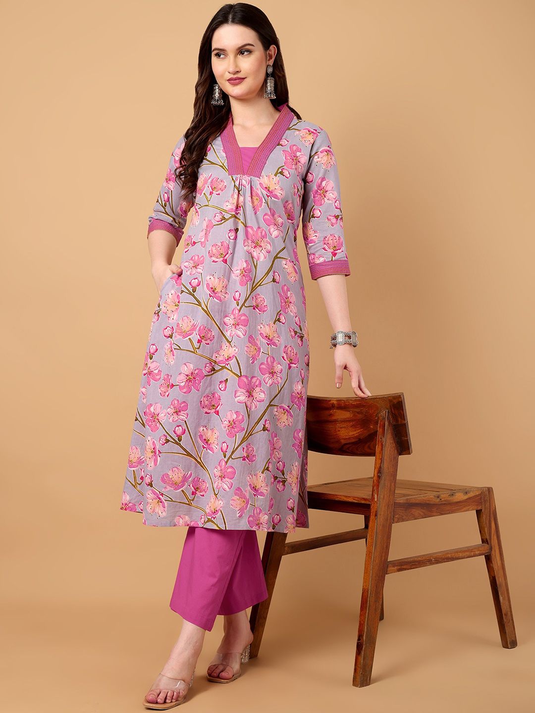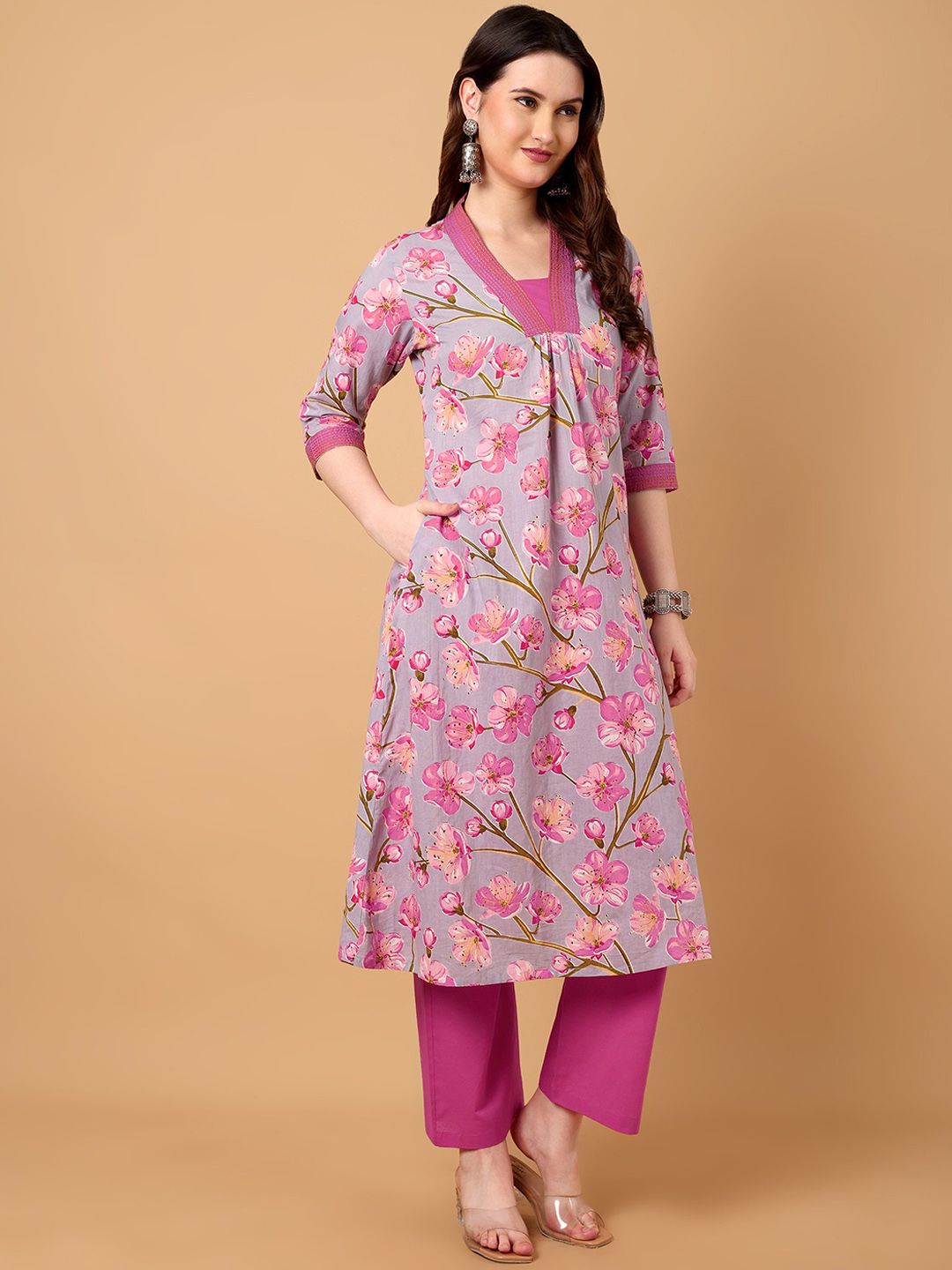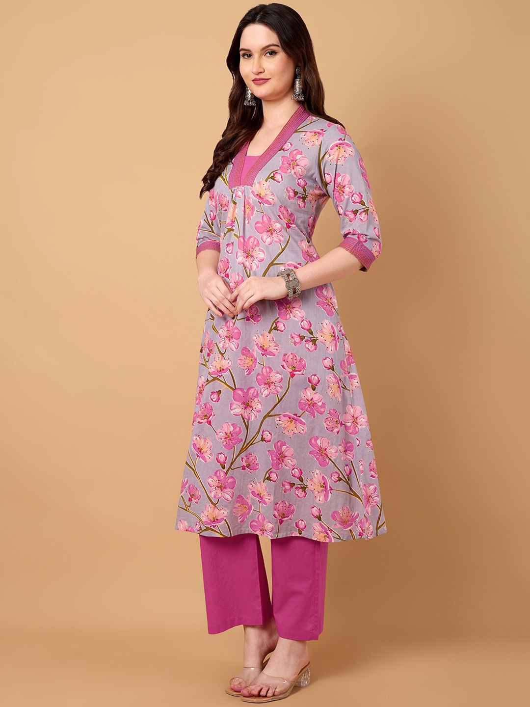 Azira Women Floral Printed Pure Cotton A-Line Kurta with Palazzo