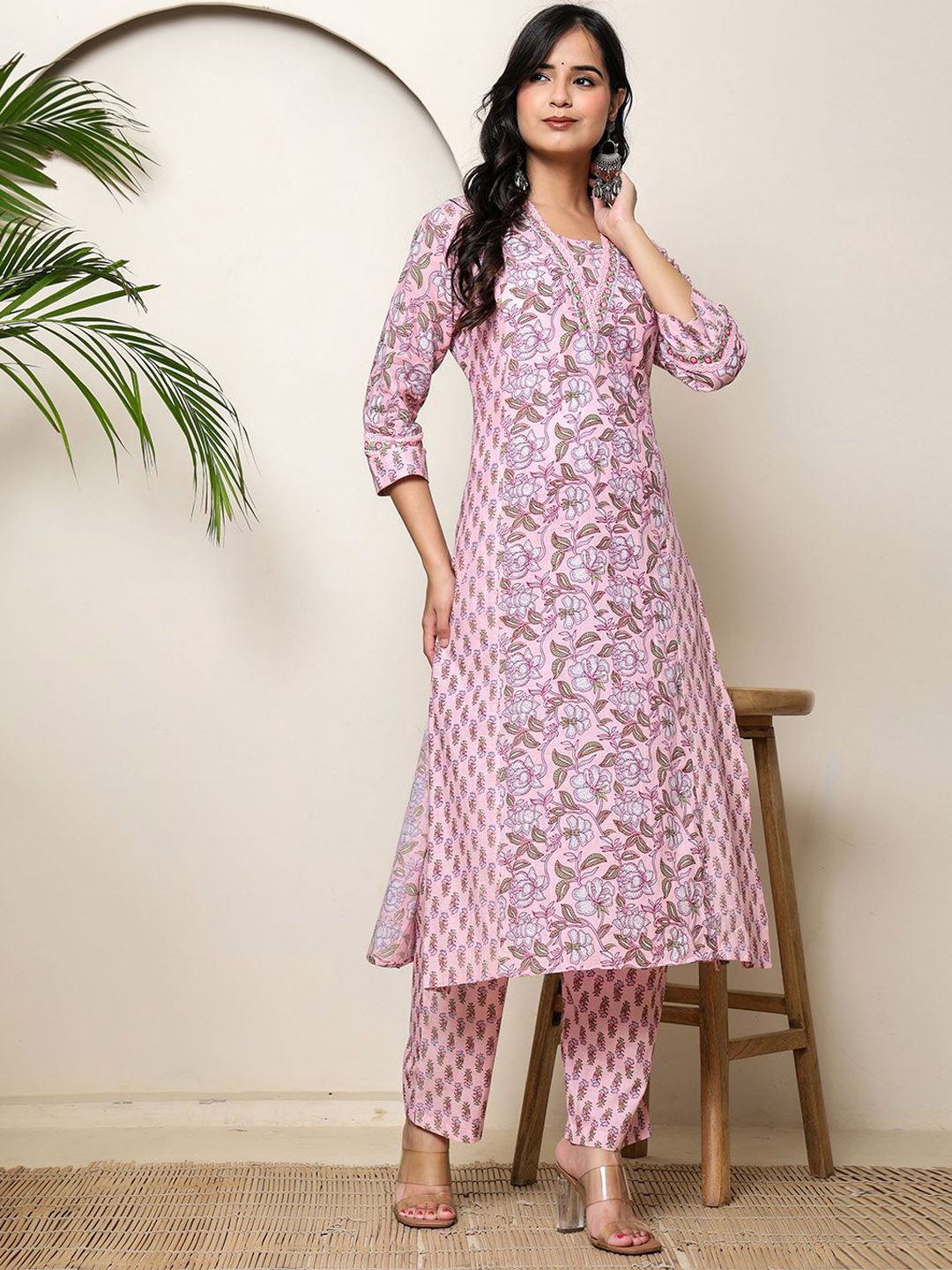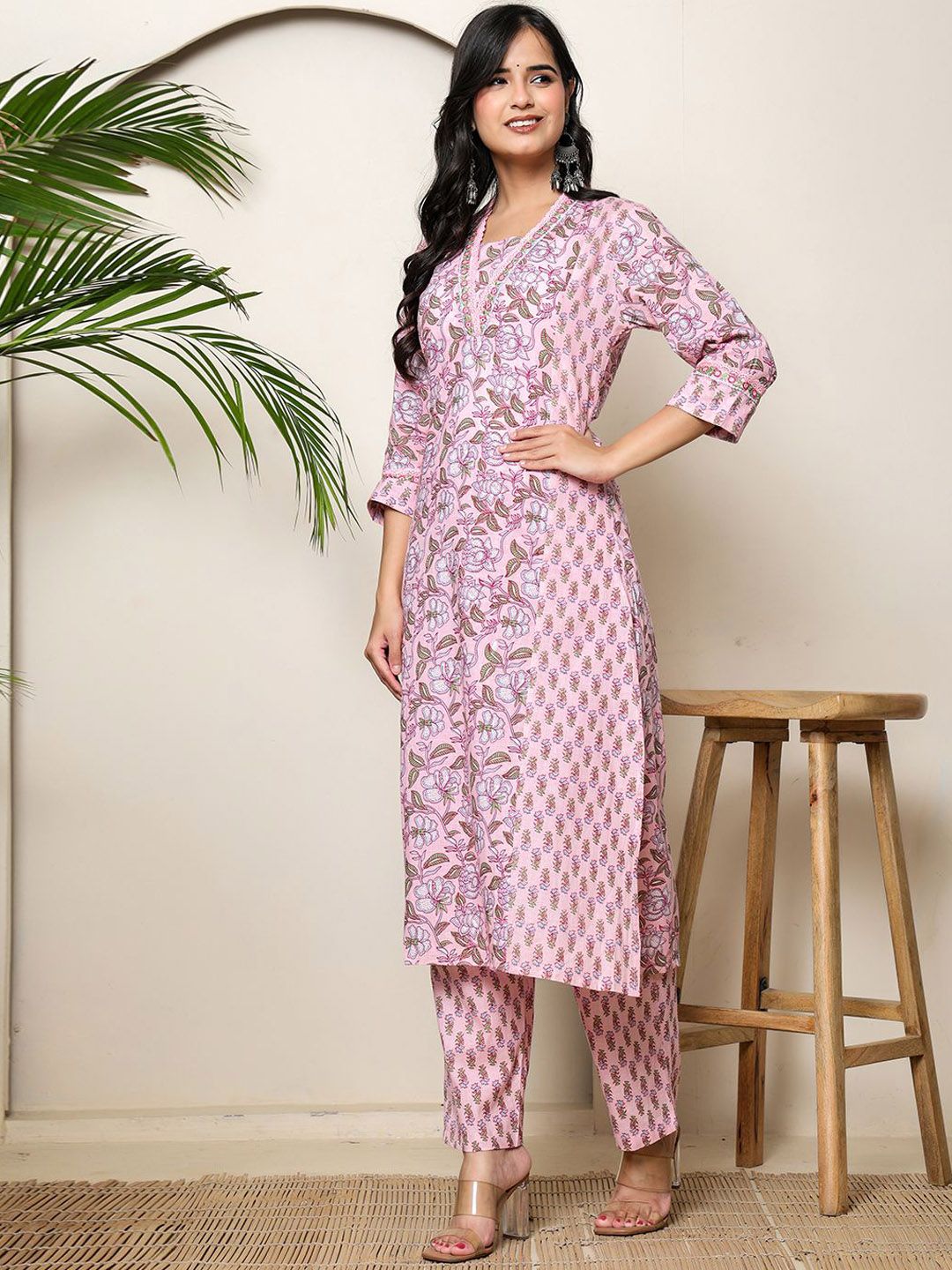 BADRIBHAI APPAREL Women Floral Printed Cotton Kurta with Trouser