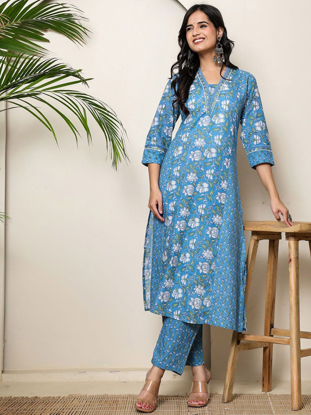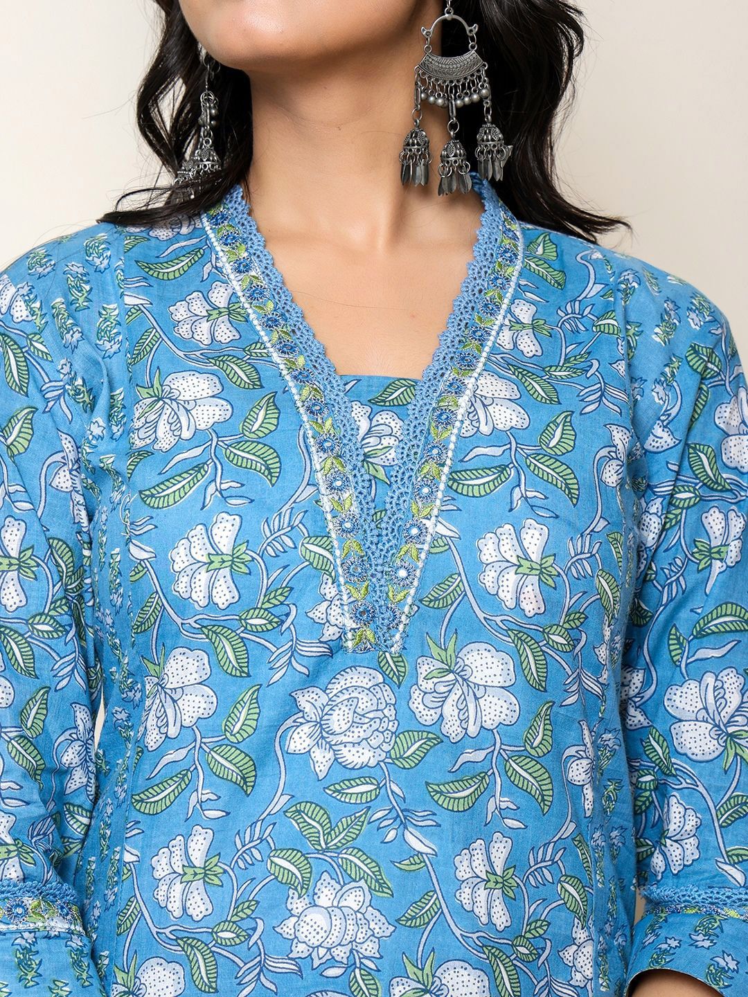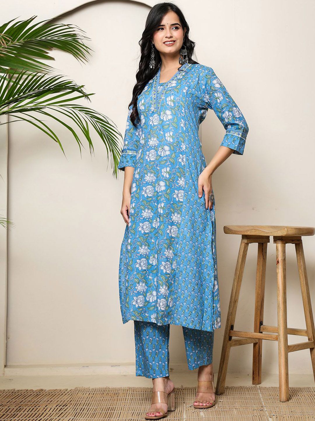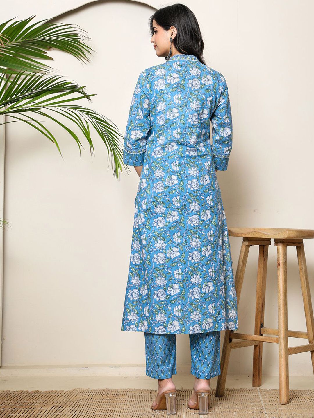 BADRIBHAI APPAREL Women Floral Printed Pure Cotton A-Line Kurta with Trouser