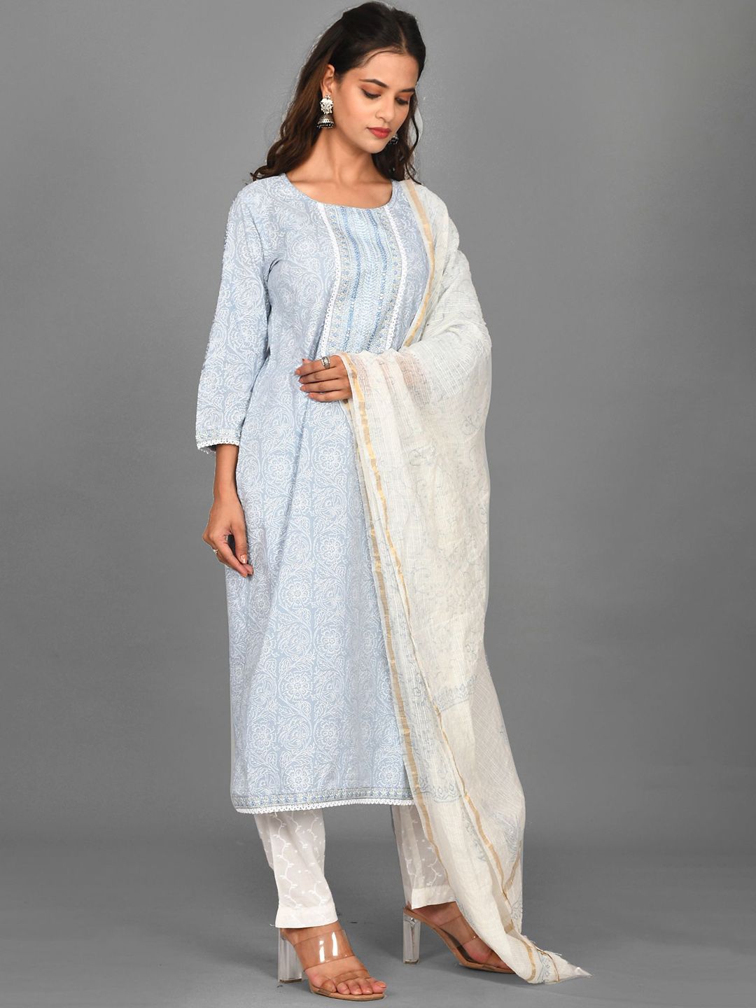 Buy this stylish BAESD Floral Printed Round Neck Thread Work Pure Cotton Kurta With Trousers & Dupatta at Marincart Nepal. This product offers great quality and value. Perfect for those looking for the latest trends in fashion. Get yours now at unbeatable prices.
