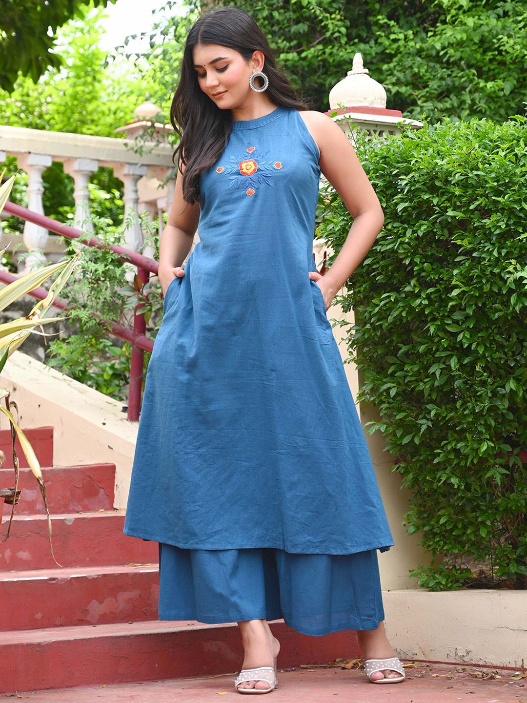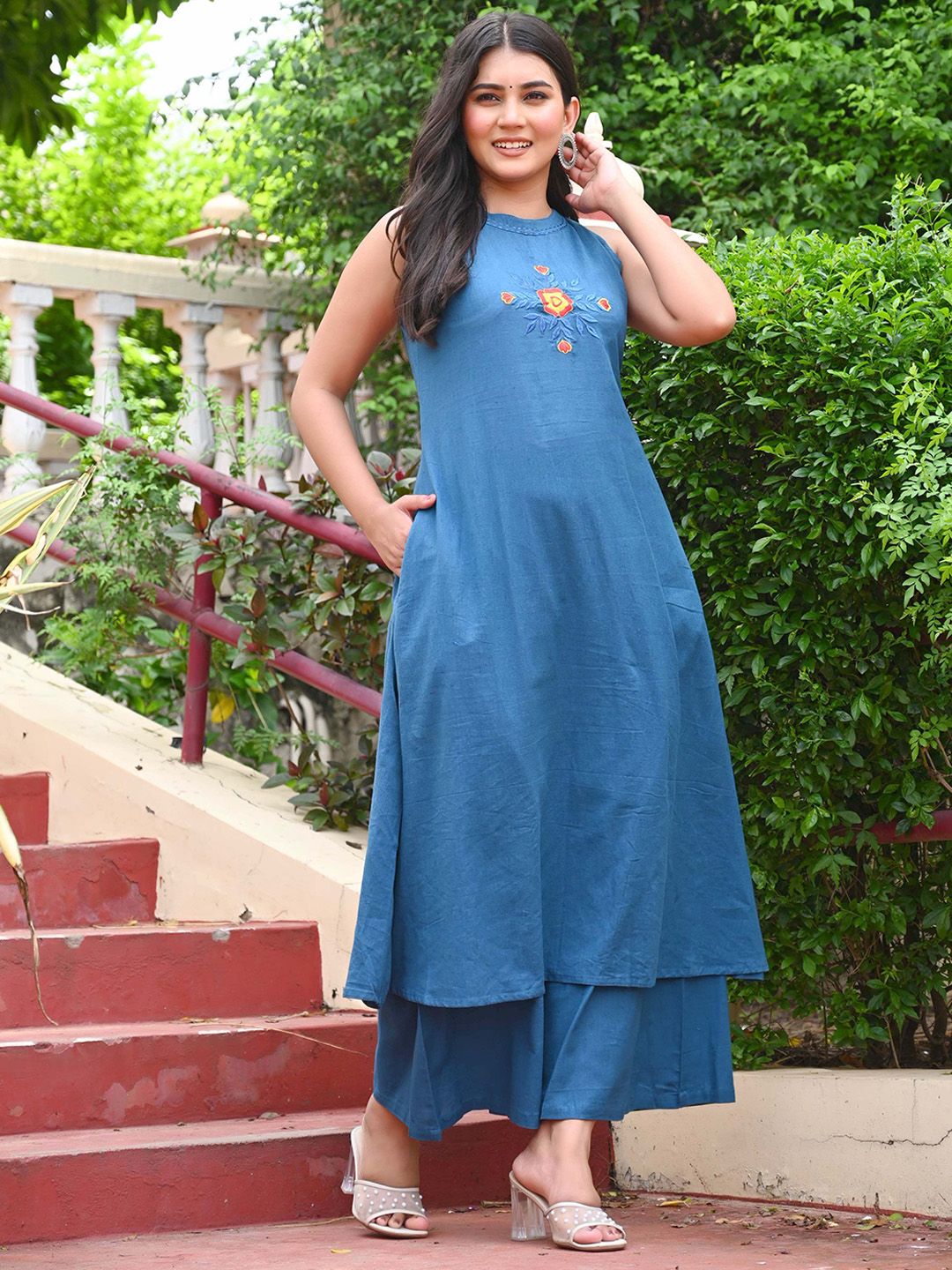 Bahe Kurtiz Women Floral Embroidered Regular Thread Work Kurta with Palazzos