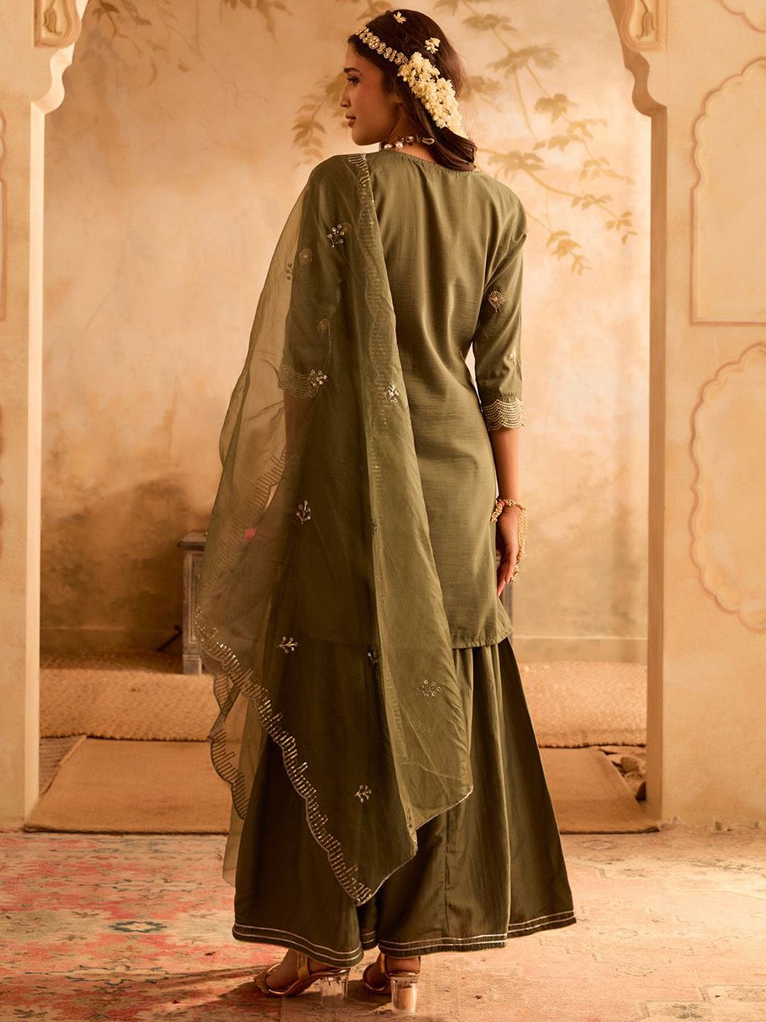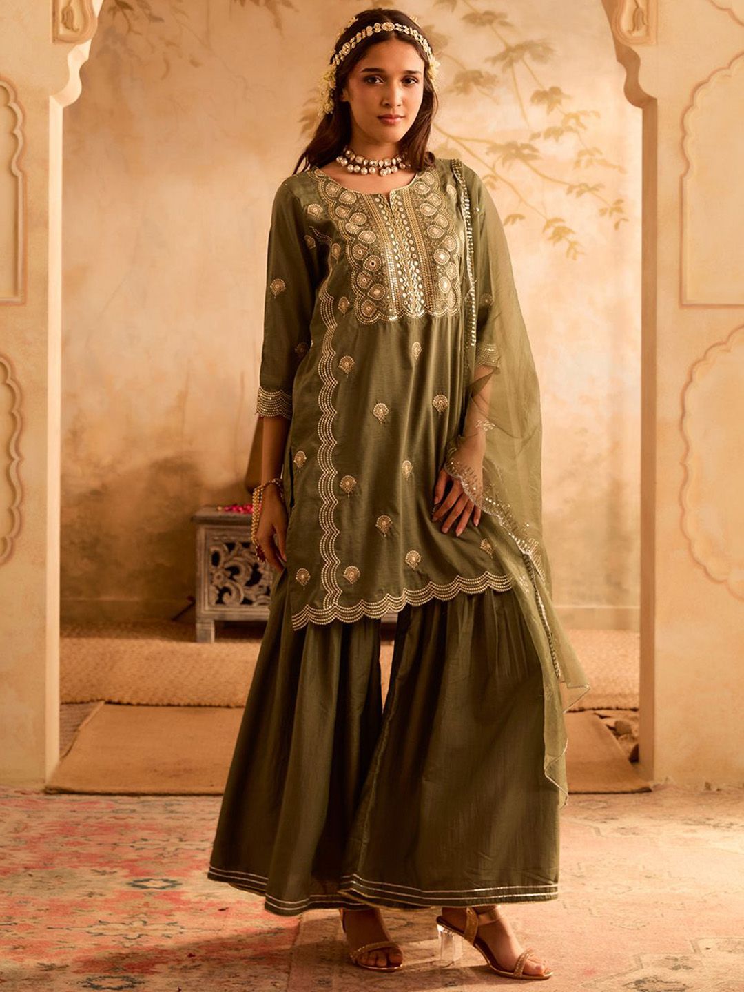 Bani Women Ethnic Motifs Embroidered Kurti with Sharara & Dupatta