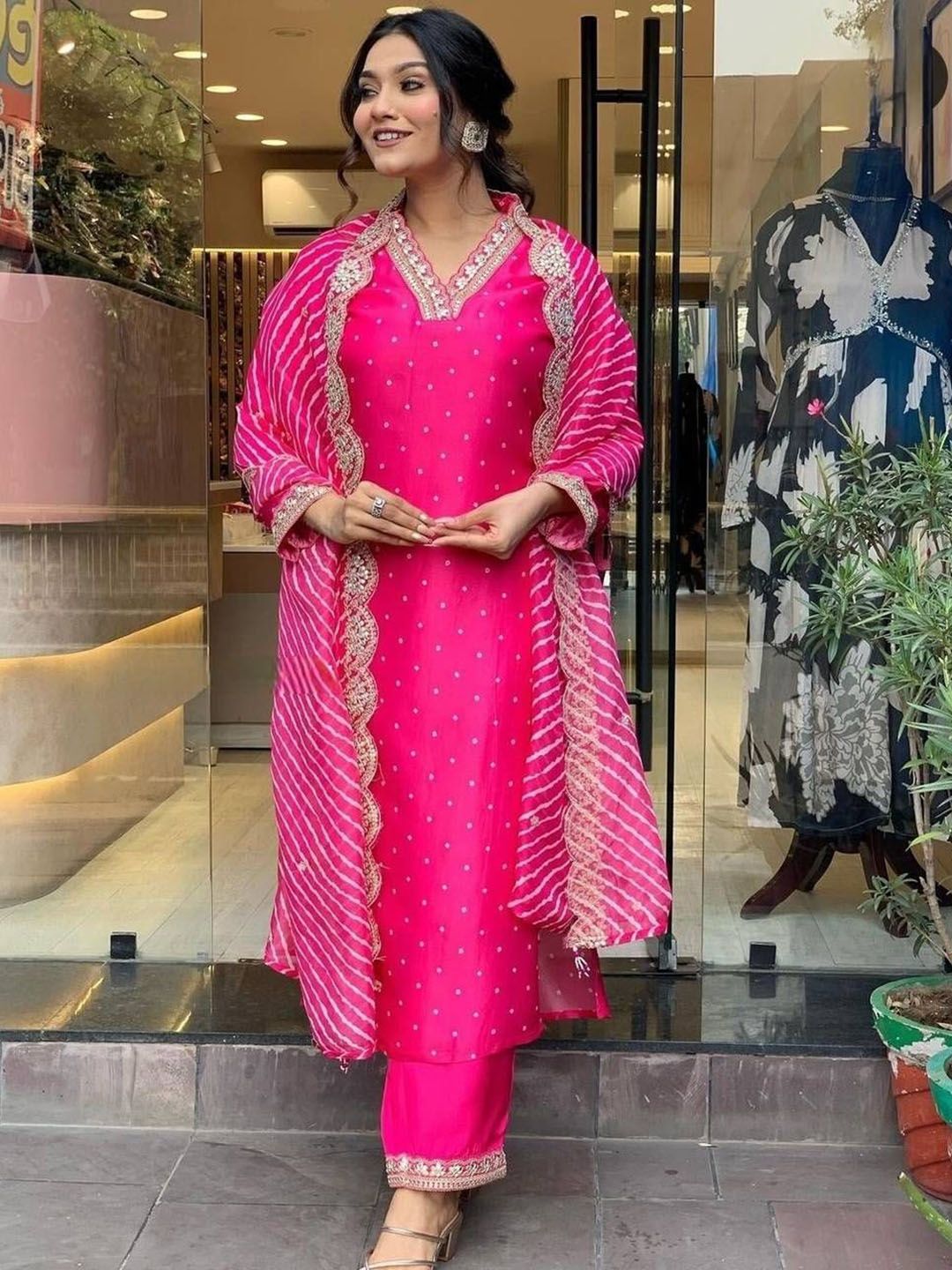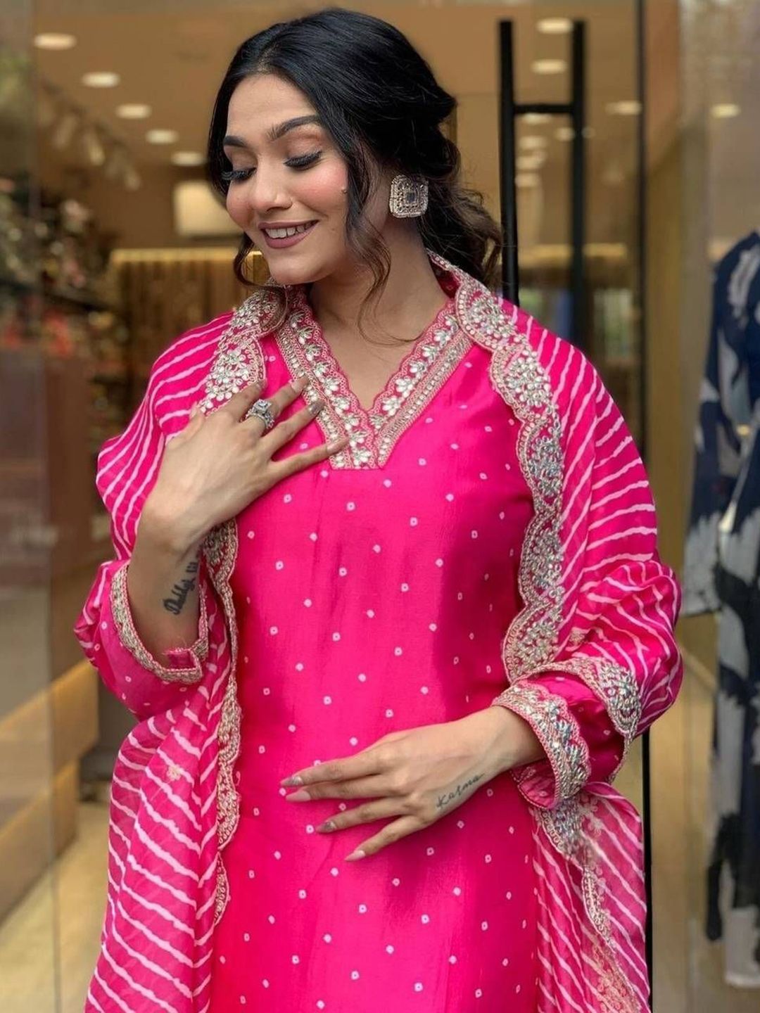 BANJANAN Women Bandhani Printed Kurta with Trousers & Dupatta
