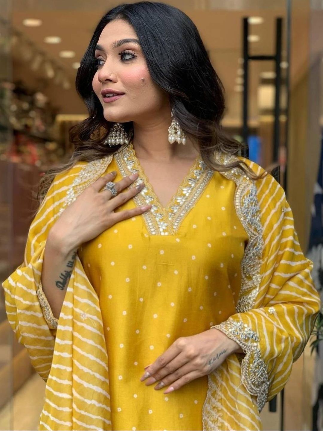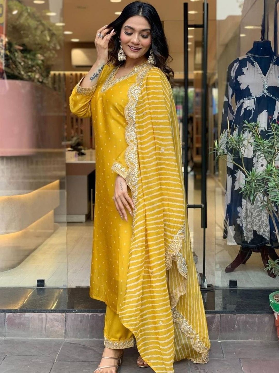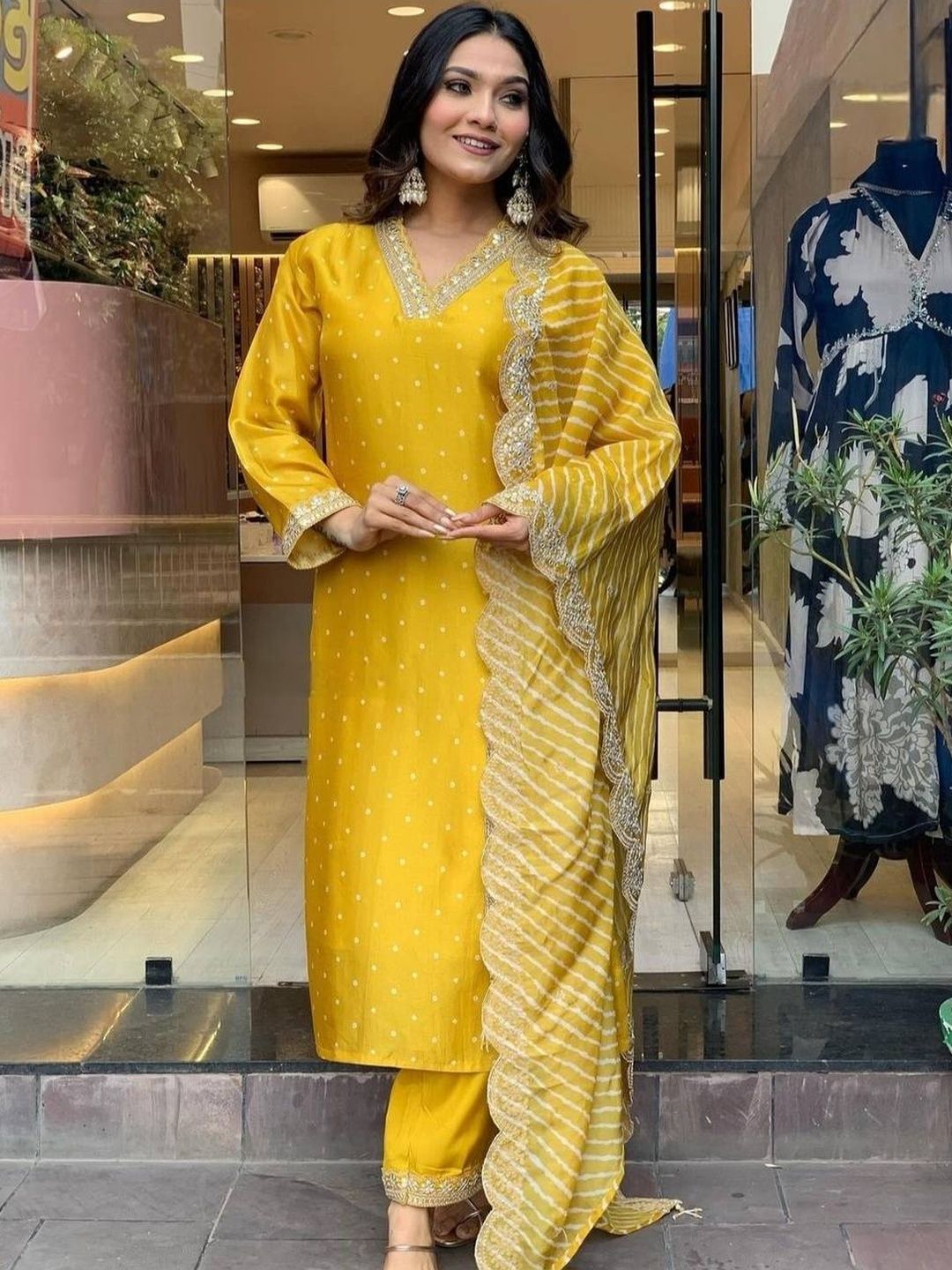 BANJANAN Women Self Design Silk Blend Kurta Sets With Dupatta