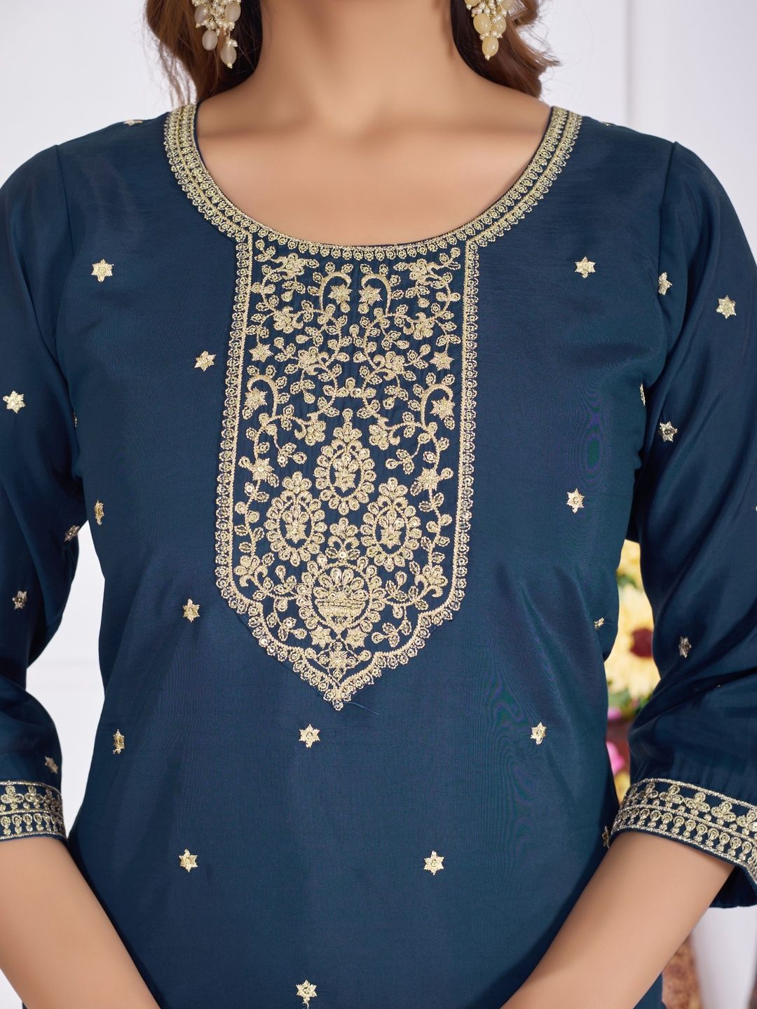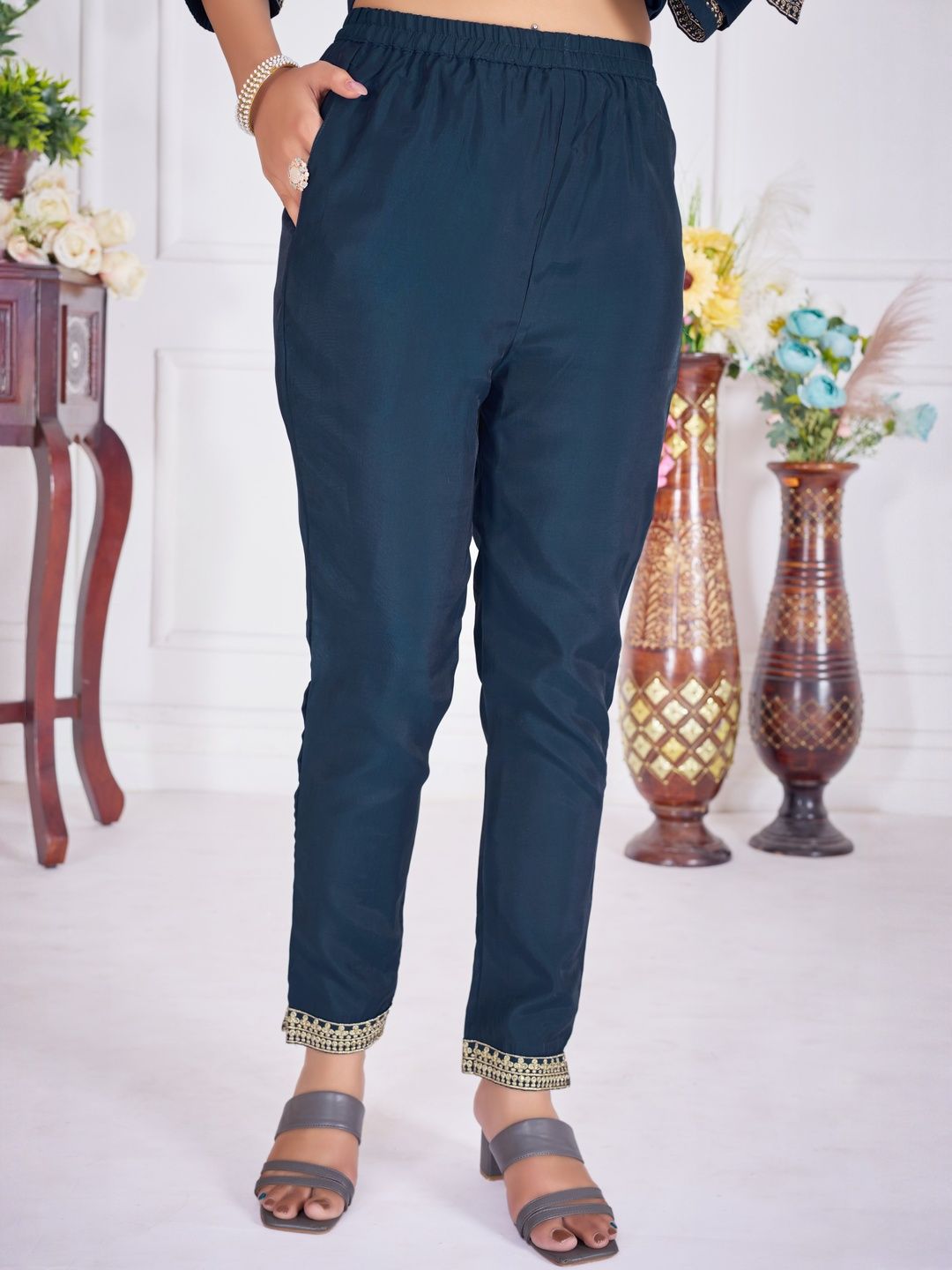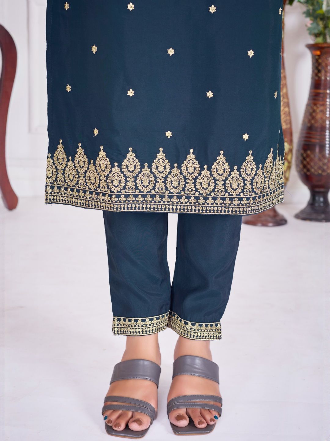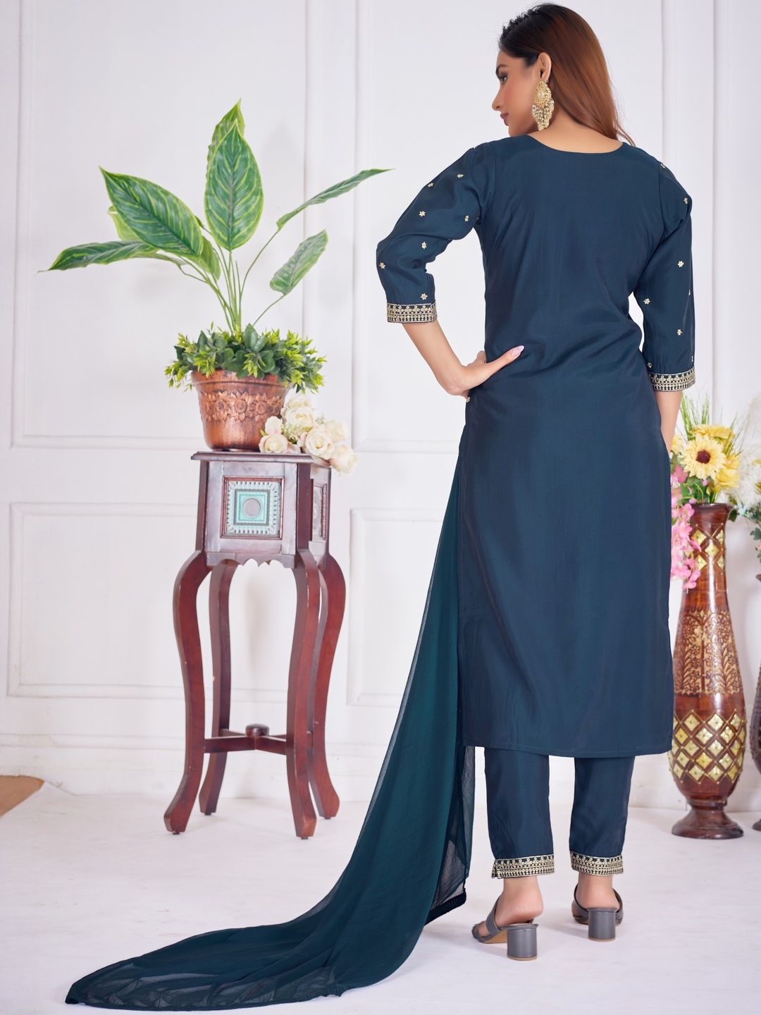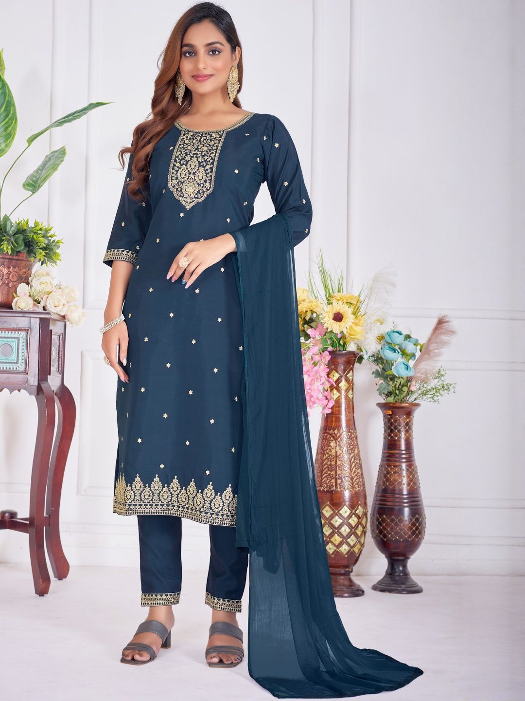 BANJANAN Women Self Design Silk Blend Kurta Sets With Dupatta