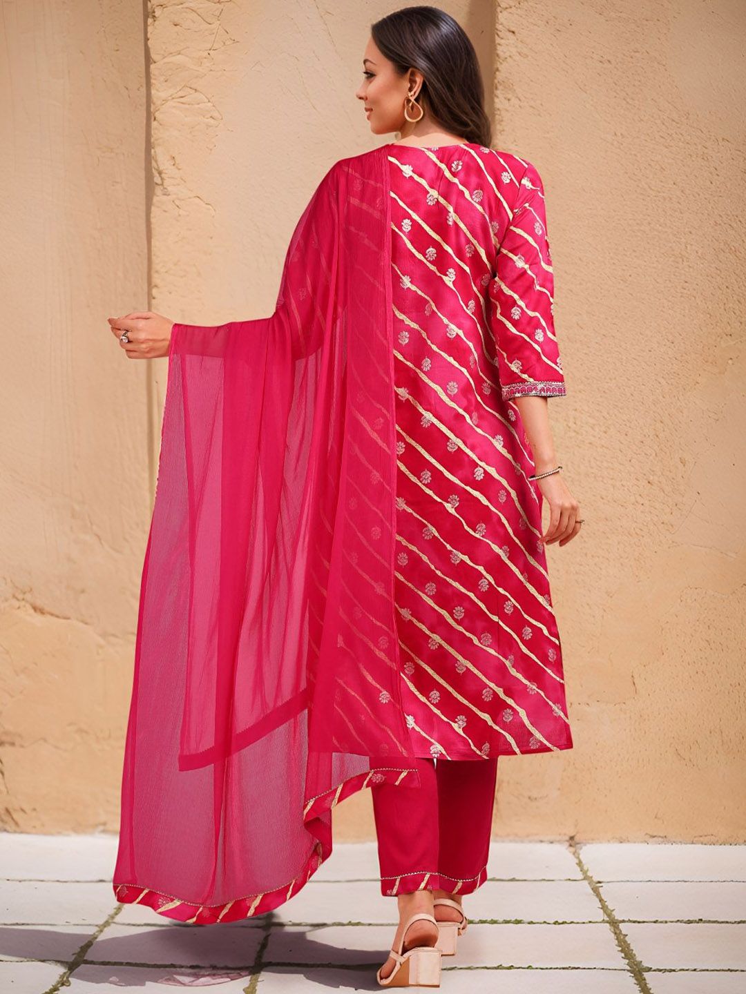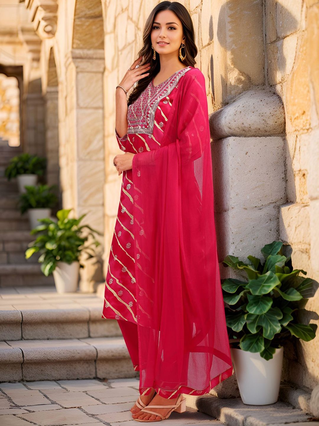 Banwaree Leheriya Printed Thread Work Pure Cotton Straight Kurta With Trousers & Dupatta