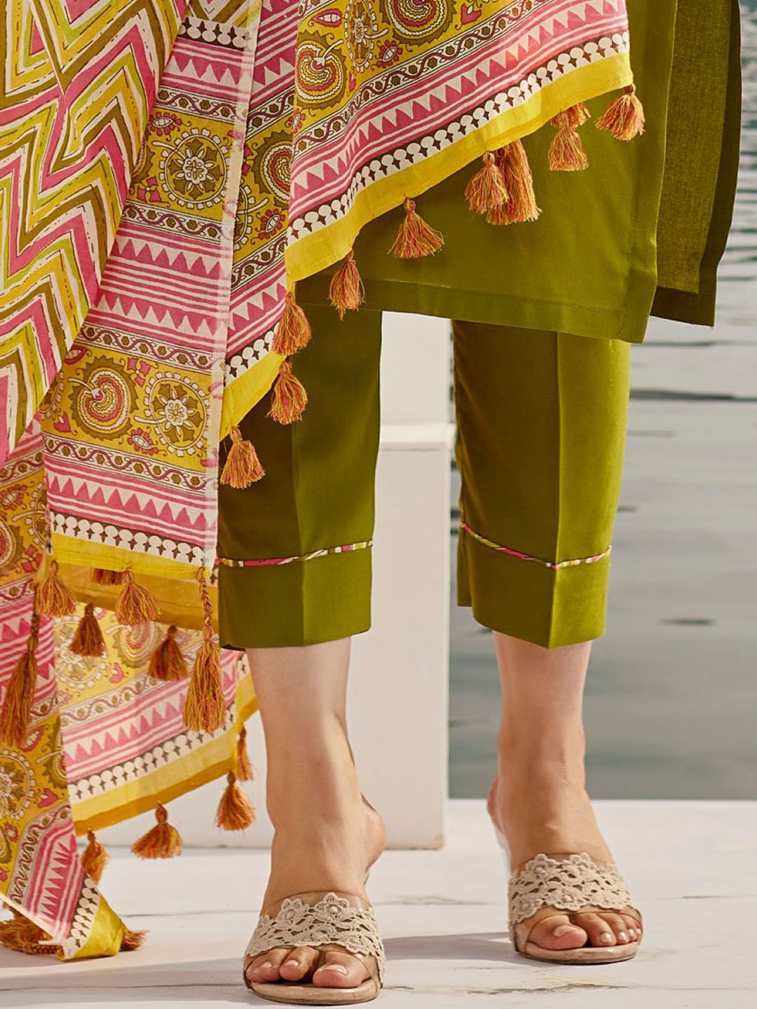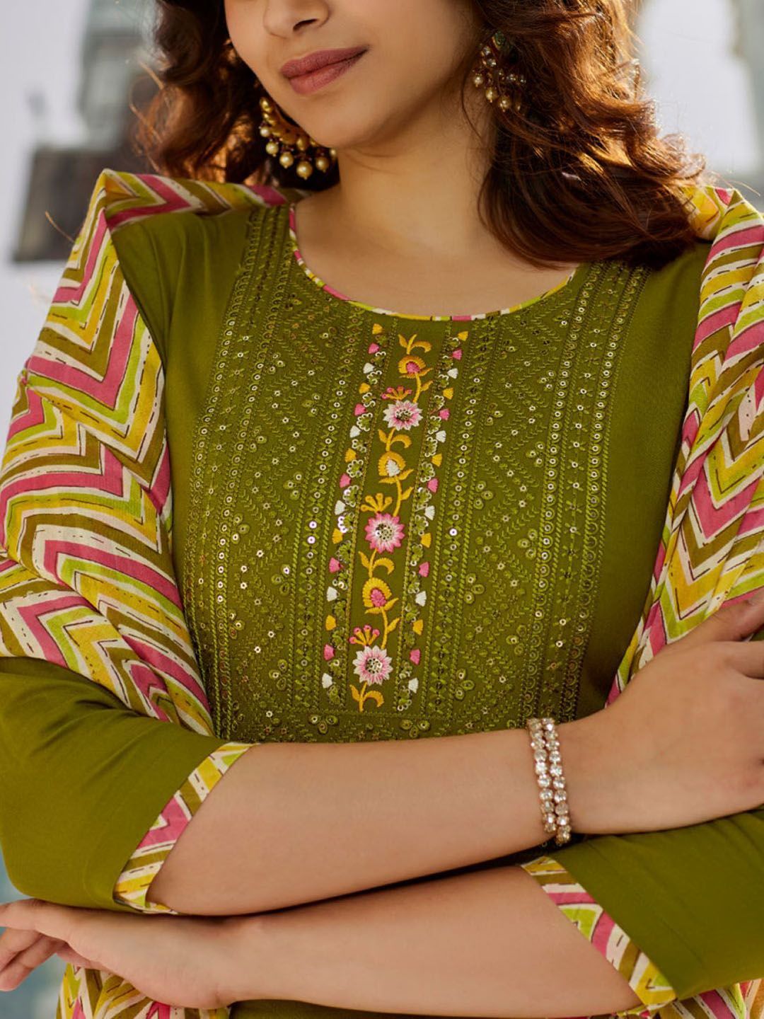 BAPS Women Floral Embroidered Regular Kurta with Trousers & Dupatta