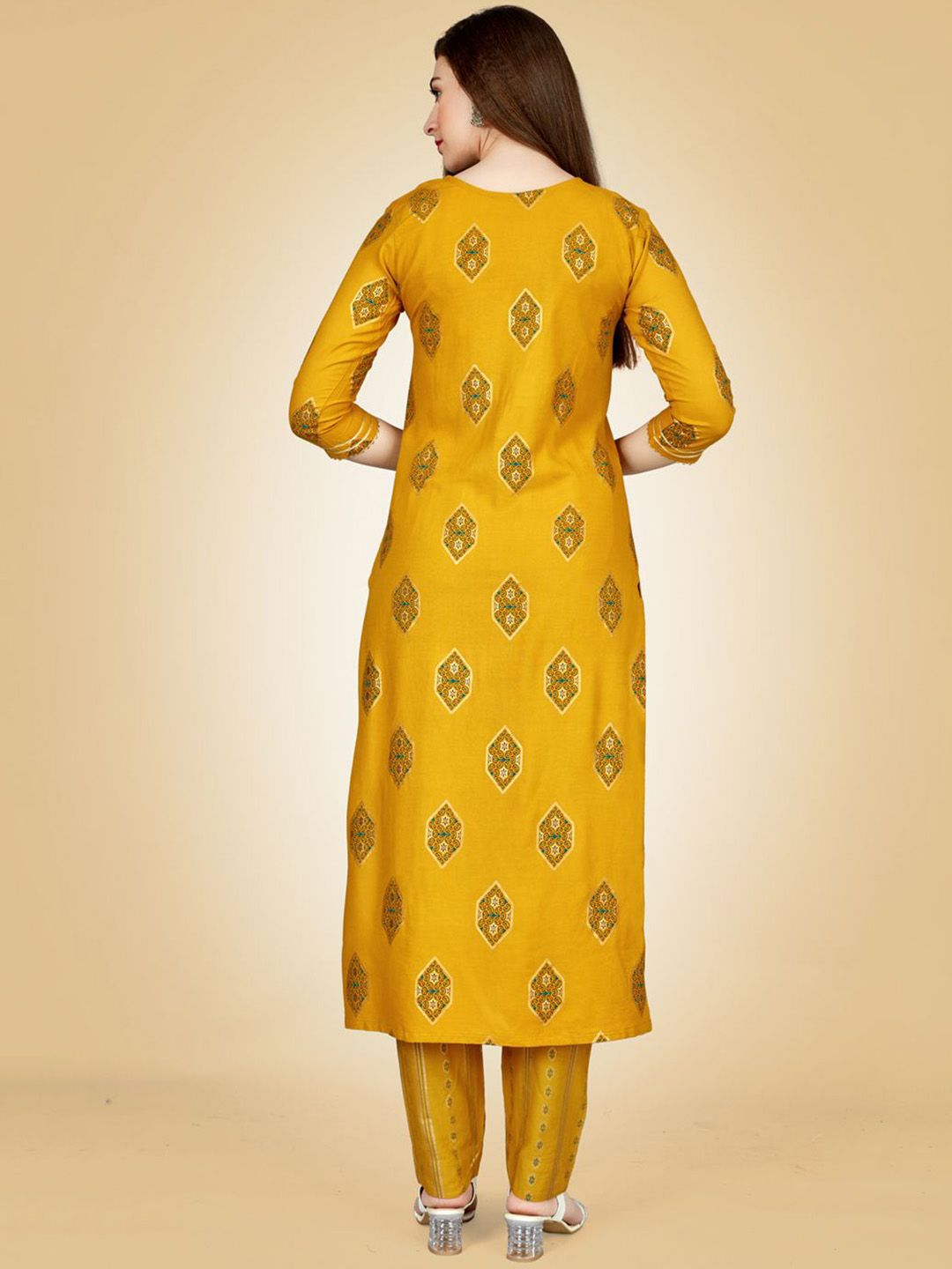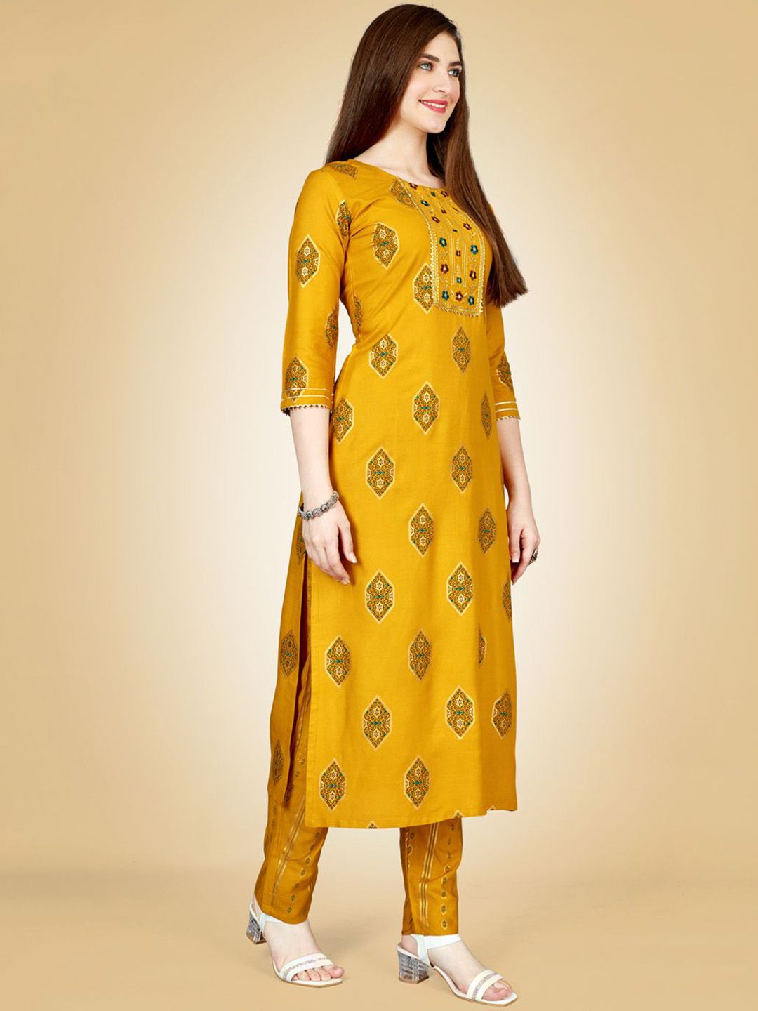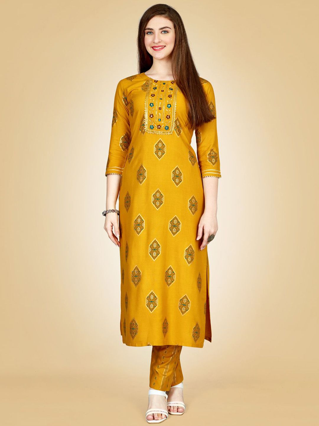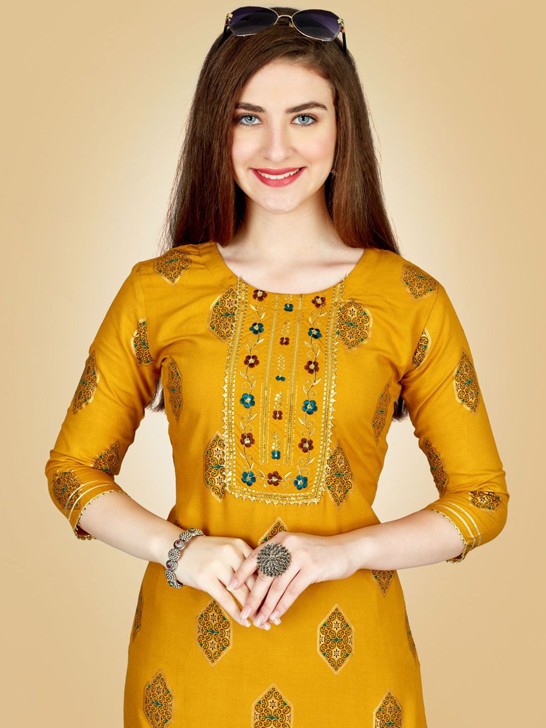 BAPS Women Floral Embroidered Round Neck Regular Kurta with Trousers
