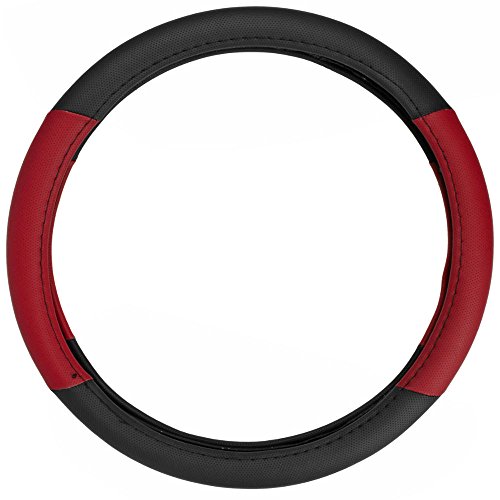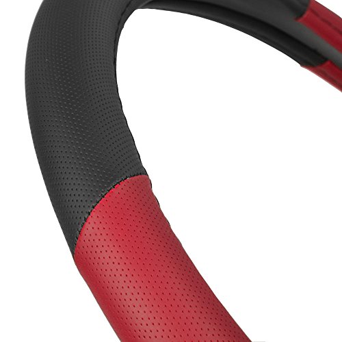 BDK W603RD Two Tone Perforated PU Leather Steering Wheel Cover for Car Van SUV Truck-Red-Standard Size 14.5 to 15.5 inch