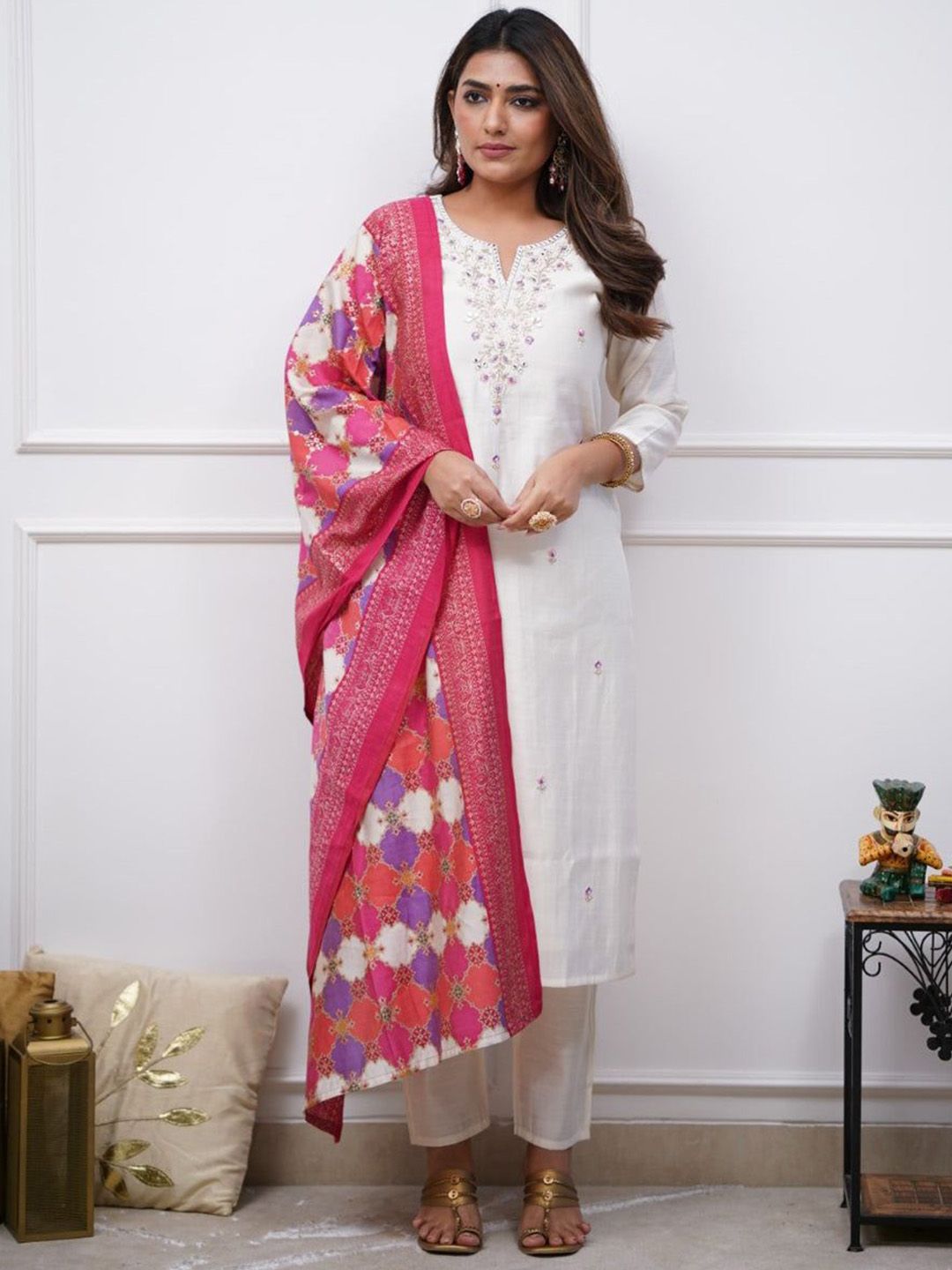 BE IN TEXO FAB Women Floral Embroidered Regular Kurta & Trousers With Printed Dupatta