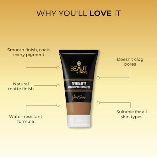 Beaut by Sterling Demi Matte Foundation for Women, Velvet Series Moisturizing Foundation Tube for All Skin, 30ml, Nude Glow
