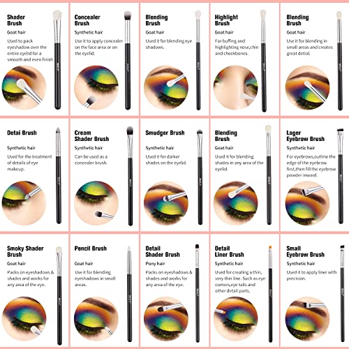15pcs brushes Perfect for liquids, powders, or creams to making all kinds of makeup application from beginner to professional. High density fluffy bristle, soft but firm to hold makeup. No shedding. Premium synthetic Brush provide an incredible touch and feel. Durable wooden handles and ferrules ensure the durability and grip feel of the brushes. Cover all types of brushes, ideally for applying, blending and shading products, easy and convenient for daily use. Our products are made of high-quality materials and are durable, ensuring that the makeup brush set is not easily damaged and providing a sense of luxury.