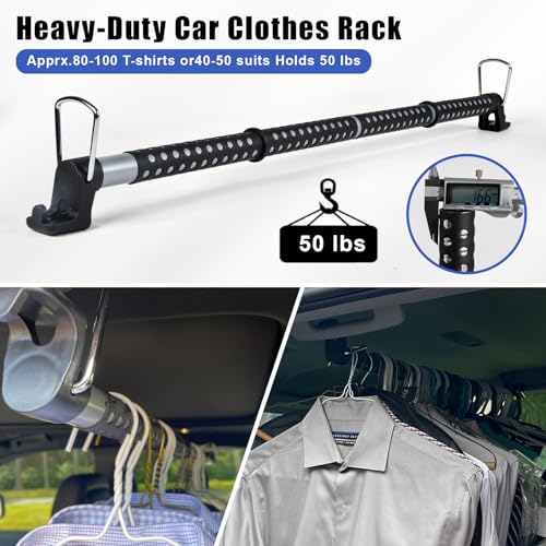 Beinhome Expandable Metal Car Hanger Rod, Metallic Finish, 63 Inches, Suitable for Most Cars, Trucks, SUVs, Vans, RVs, College Dorm, Road Travelers