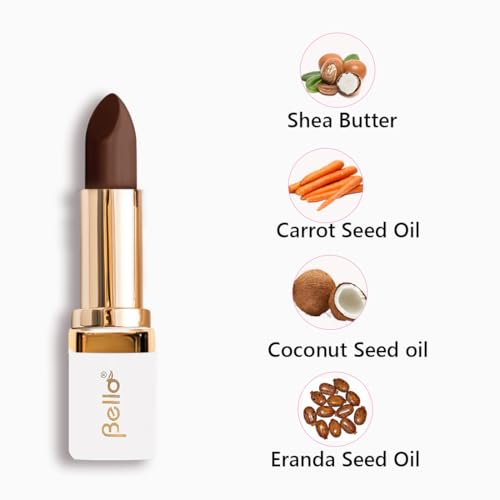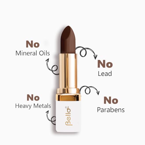 Bello Lipstick Natural & Matte Finish | Long-Lasting | Chemical-Free | Enriched with Shea Butter & Carrot Seed Oil | AYUSH Certified (Chocolate Dream, 4gm)