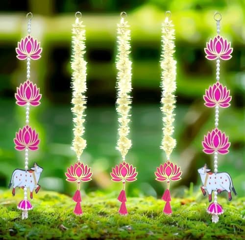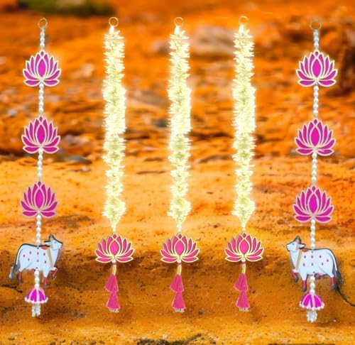BENAVJI Handmade Wall Decor Lotus with Ball Style Hanging for Home Decor,Diwali Decor,Wedding and All Festival Dcor Pack of 5pcs