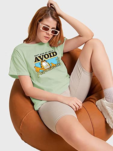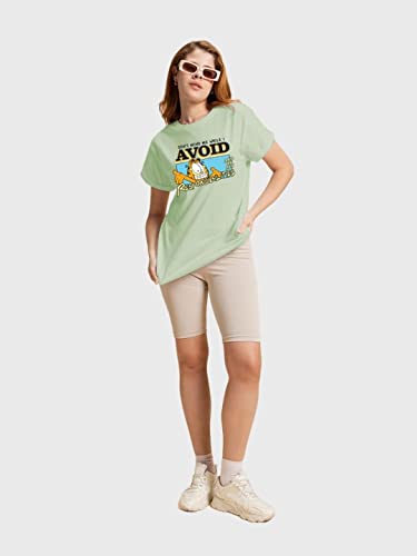 Bewakoof Official Garfield Merchandise Women's 100% Cotton Graphic Print Boyfriend Fit Round Neck T-Shirt