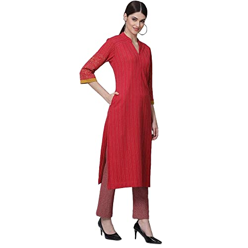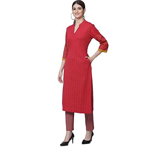 BIBA Women Polyester Straight Fit Poly Metallic Kurta