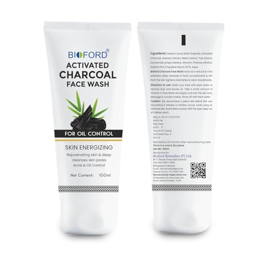 Bioford Activated Charcoal Face Wash for Oil Control & Dirt Removal 100ml | Fights Pollution, Blackheads, Acne & Pimples | Activated Charcoal Face Wash For Oily Skin For Men & Women Pack Of 1