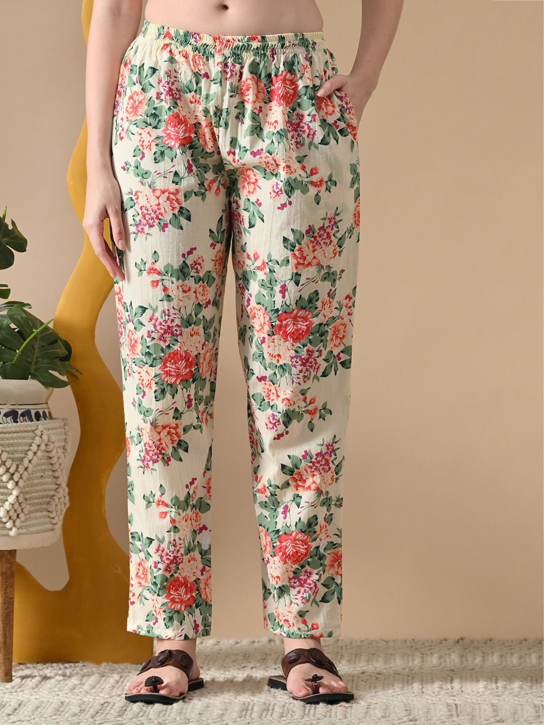 BKApparels Women Floral Printed Thread Work Pure Cotton Kurta with Pyjamas
