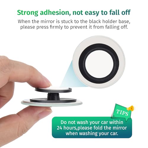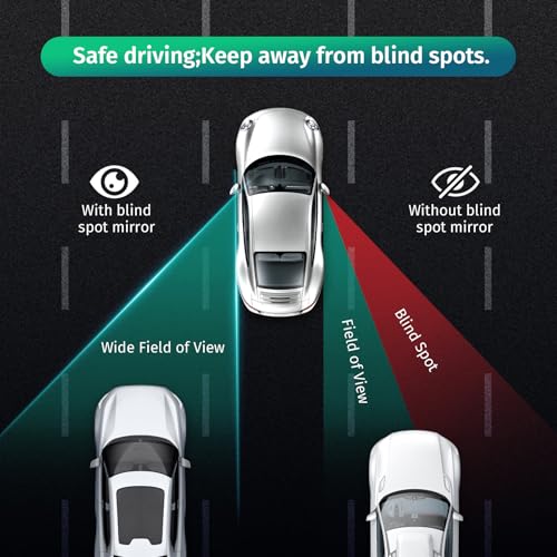 ?Safe Driving?Blind spot mirrors provide a wide field of vision for both sides of the car, eliminating blind spots, avoiding potential accidents and improving driving safety; applicable to all kinds of vehicles. ?360°Adjustment?Newly upgraded 360° manually adjustable swinging blind spot mirrors, maximize your field of vision with a wide angle in the car. ?HD Wearable Glass?2 inch HD glass, bezel-less, curved design, effectively expanding your field of vision. With slim design, IP65 waterproof, rustproof, convex, haze-free rearview mirror. ?EASY INSTALLATION?Please clean the original rearview mirror, then stick the blind spot mirror on the side mirror. When the mirror is glued to the side mirror, press down firmly, it sticks more firmly and won't fall off. ?Universal Compatibility?Designed for seamless installation on a wide range of vehicles, including cars, vans, SUVs and trucks, providing a versatile solution for improved rear-view visibility