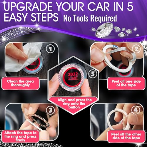 Bling Car Accessories for Auto Start Engine Ignition Button Key and Knobs Bling Car Decor Crystal Rhinestone Car Bling Ring Emblem Sticker Colour: Pink